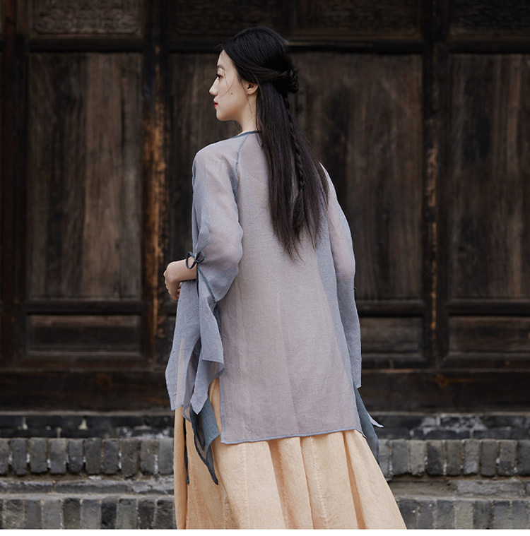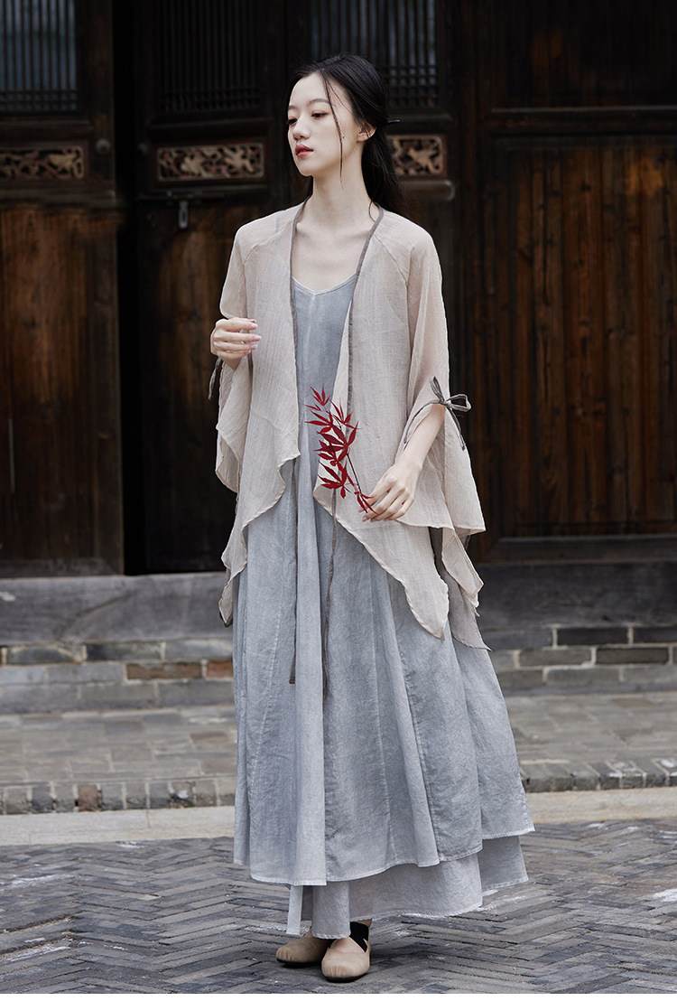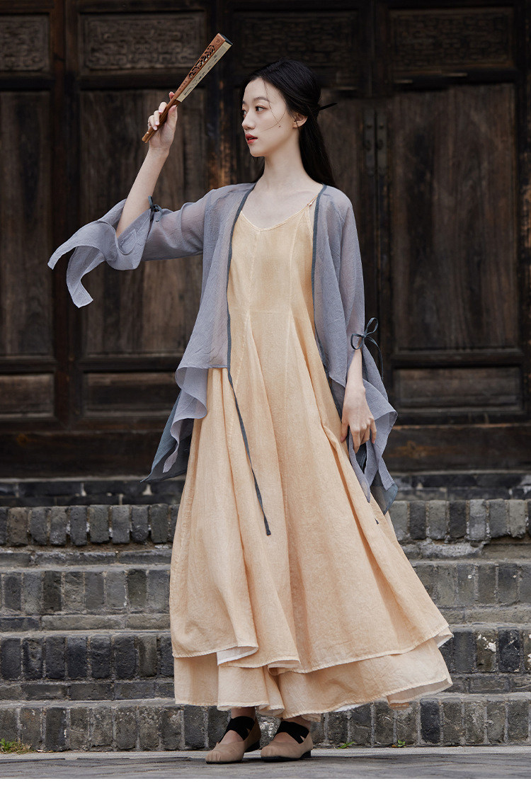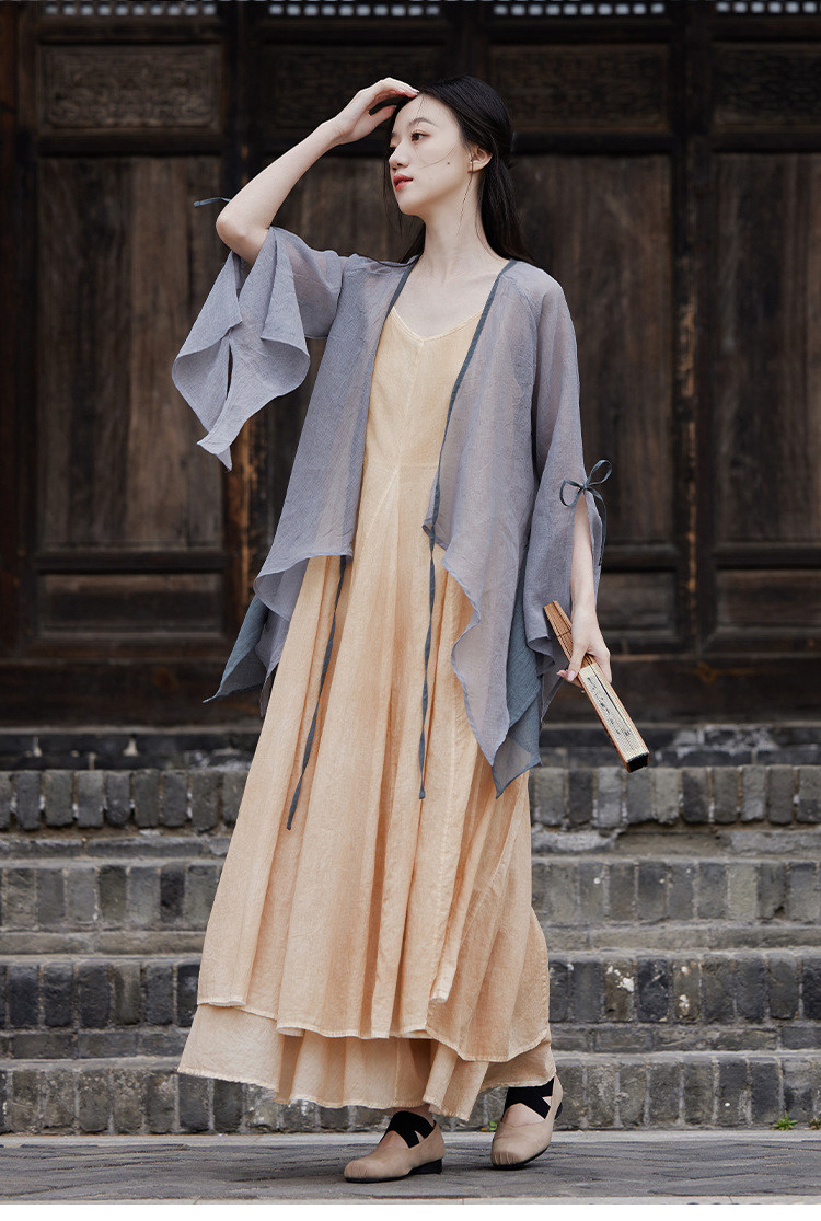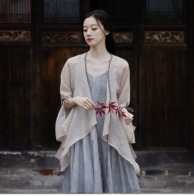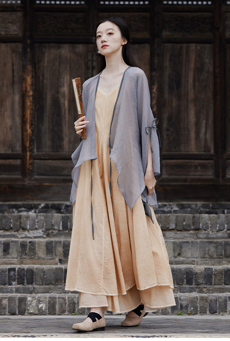 冰麻+滌綸混紡面料,輕薄又透氣胸前系帶設計,可交領漢服式穿著, 隨意散開就很仙垂下來隨風飄飄 高ji感就來了喇叭袖設計,滿滿的仙氣氛圍感搭配小吊帶 或者吊帶裙,就hin好看了夏天在空調房里隨手搭搭也合適衣櫥里一定要有的一件衣長88-81cm,胸圍94cm,袖長66cm,袖口36cm注:實際顏色偏暗偏深!模特室外陽光下拍攝會比較淺,介意色差的請勿慎重下單!!!