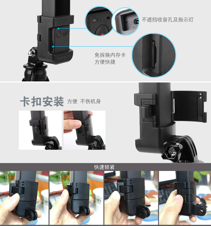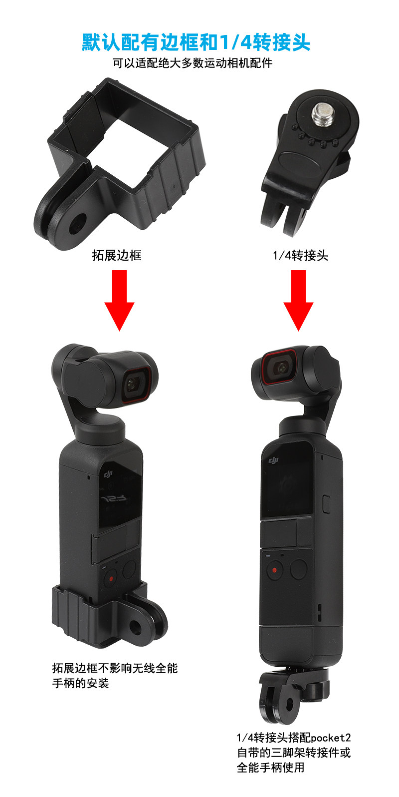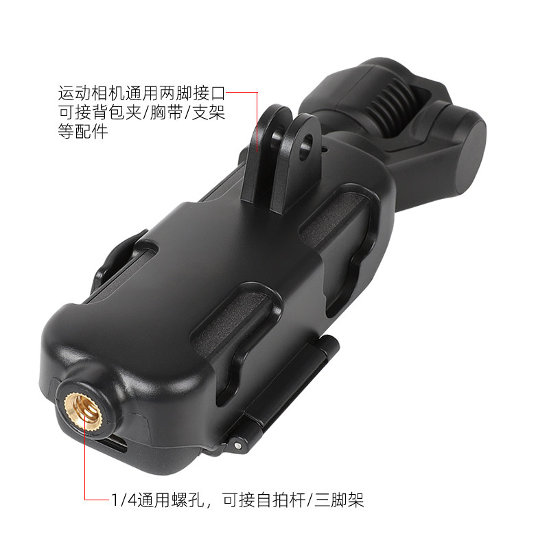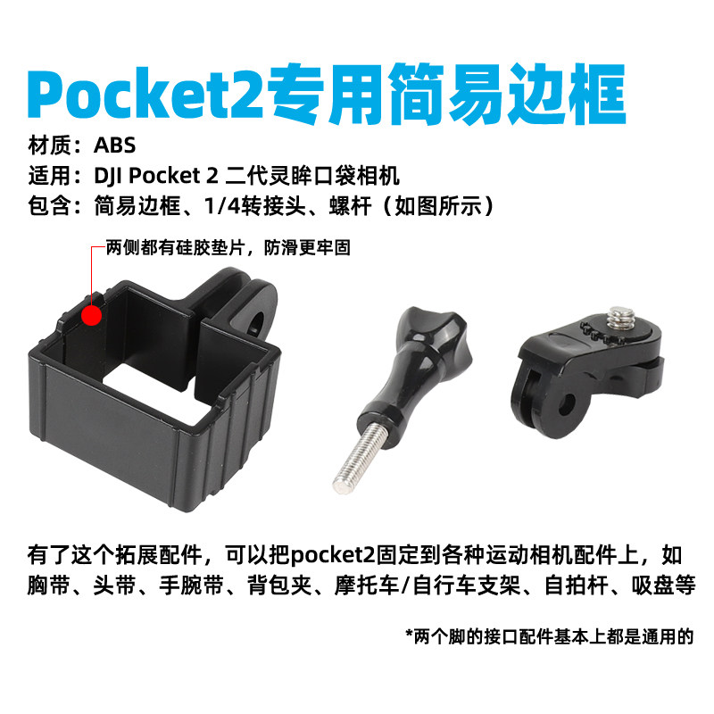 本品是一個邊框,不含背包夾自拍桿等配件,通過這個邊框,可以把口袋相機連接到各種運動配件上面,如背包夾、胸帶、頭帶、手腕帶、頭盔、自拍桿、三腳架等。
