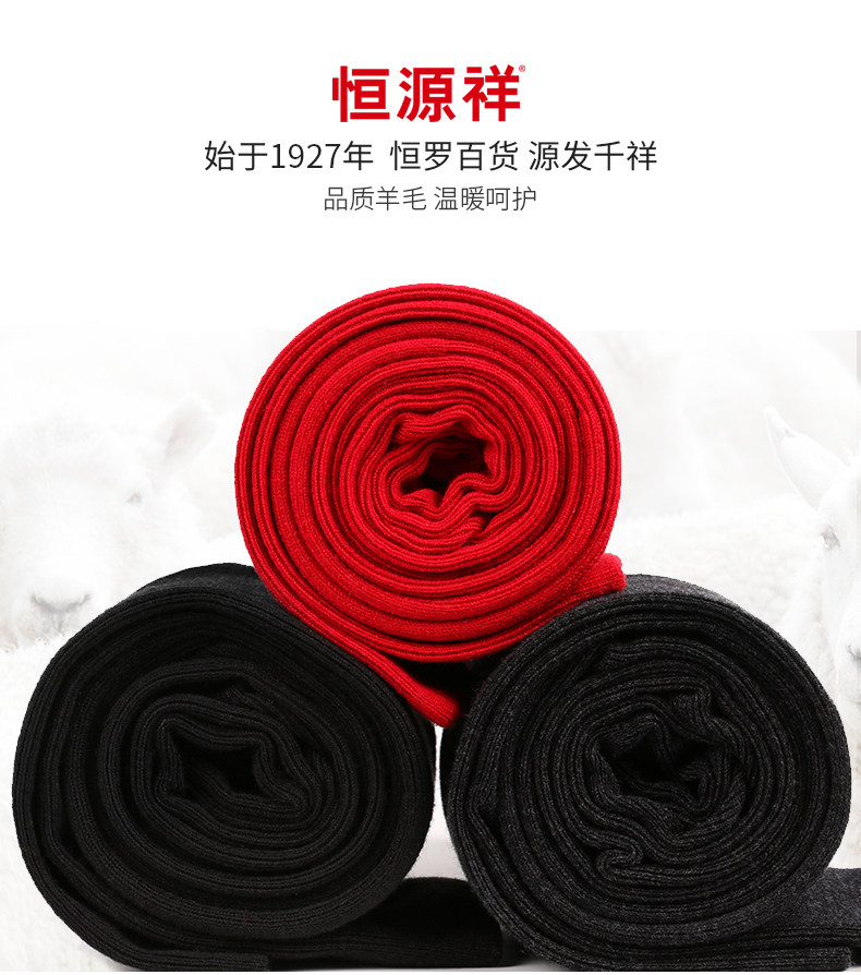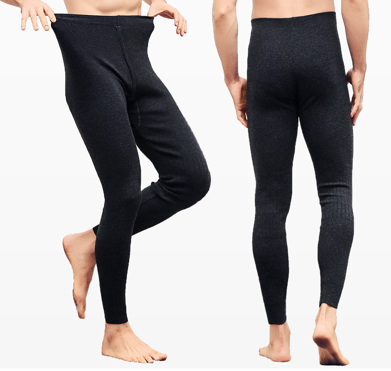 恒源祥羊毛褲男貼身打底褲秋冬季修身中腰護膝男褲純色加厚保暖褲
