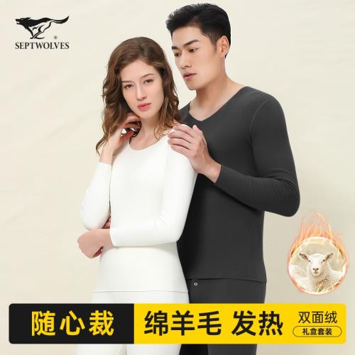 七匹狼情侶保暖內衣男士羊毛發熱無痕冬季加絨加厚秋衣秋褲套裝女
