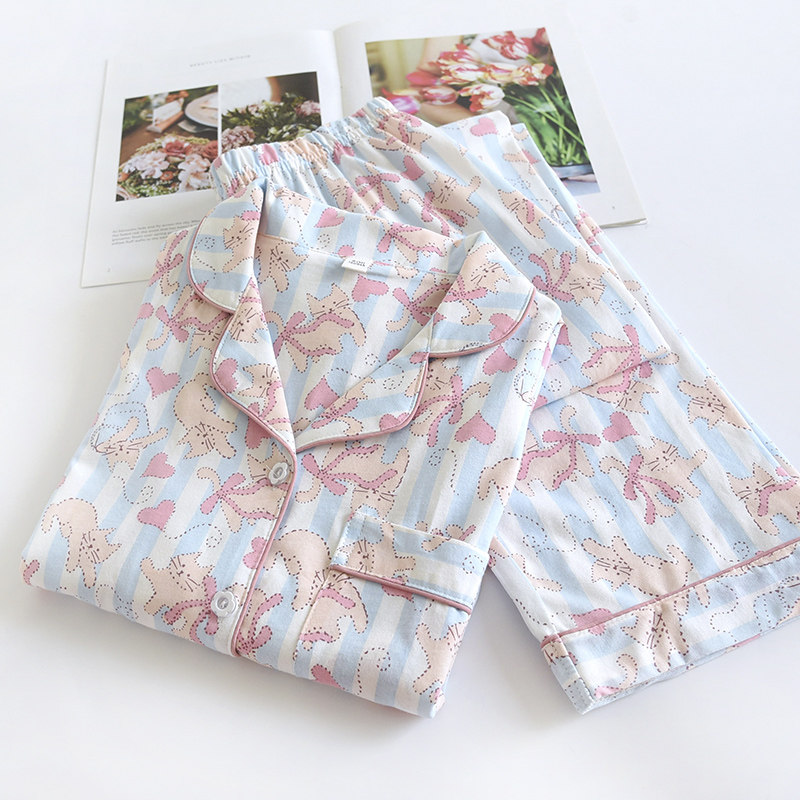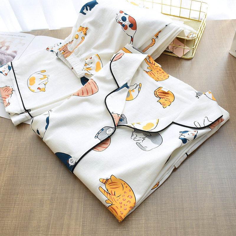 女士全棉萌貓洗家居套裝