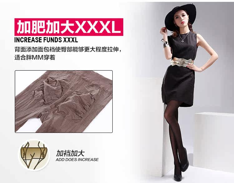 30D款:此款是雙面加襠,絲襪材質是珠光油亮的,光澤非常好,加大加肥,一般推薦120-150斤穿。