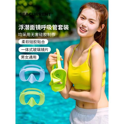 Seacurrent潛水面鏡男女款通用浮潛水肺潛水面罩面鏡呼吸管套裝
