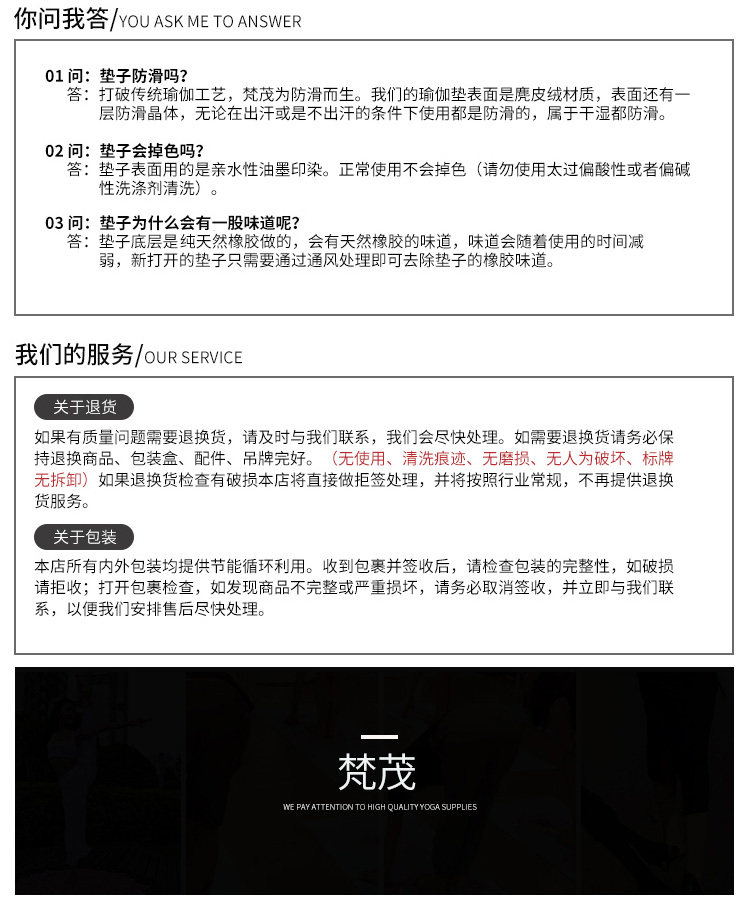 PS: 本店所有產品均保證正品,支持任何方式的驗貨,假一罰十!我們尊重知識產權與專利技術,堅決抵制假貨仿款,不同批次的產品,因工藝的特殊要求,會有各種因素導致色彩有少許色差,少許色差,不屬于質量問題,請須知,關于氣味,因人對氣味的敏感度而異,新墊子塑封包裝,會有天然橡膠的氣味,通風幾天就會散味,關于材質:此款印花有PU+橡膠和麂皮絨+橡膠兩種材質,麂皮絨材質是越出汗越防滑,PU材質是干濕防滑,所以相對選購PU材質的比較多,需要麂皮絨的可聯系客服!支持會館量大采購,具體可咨詢客服!