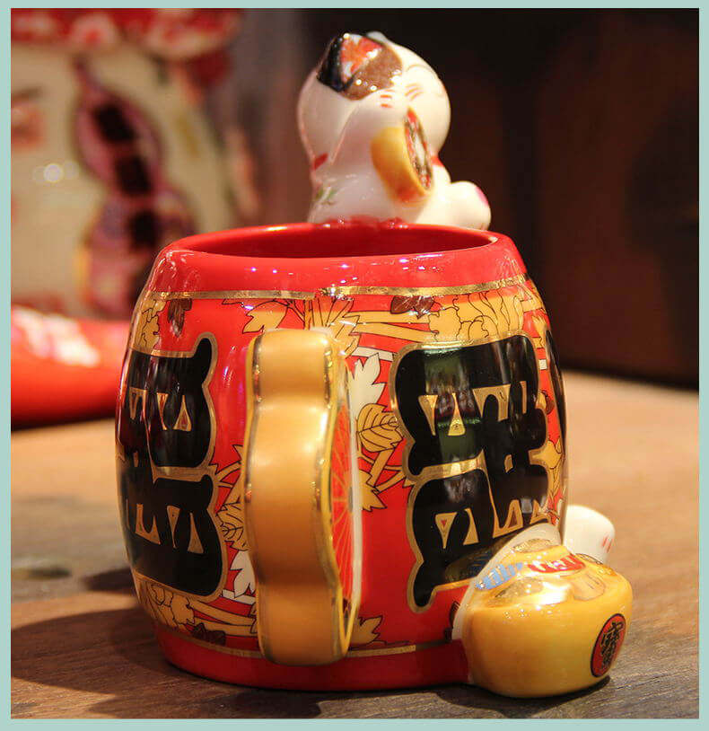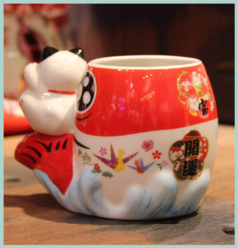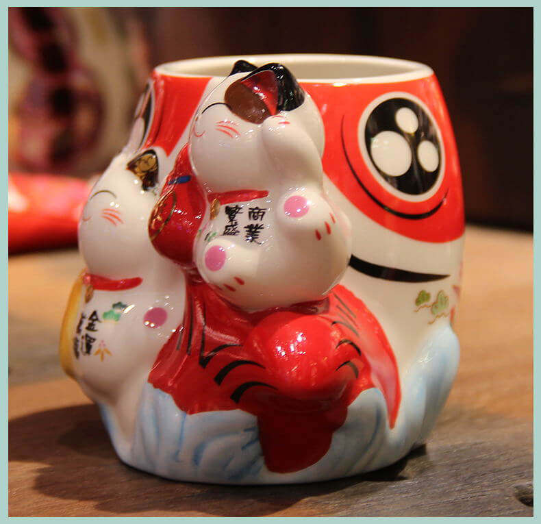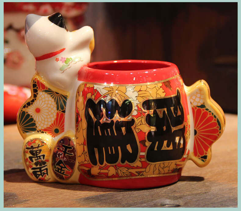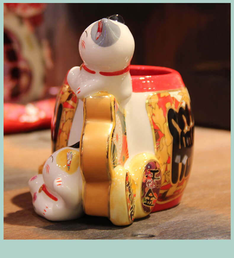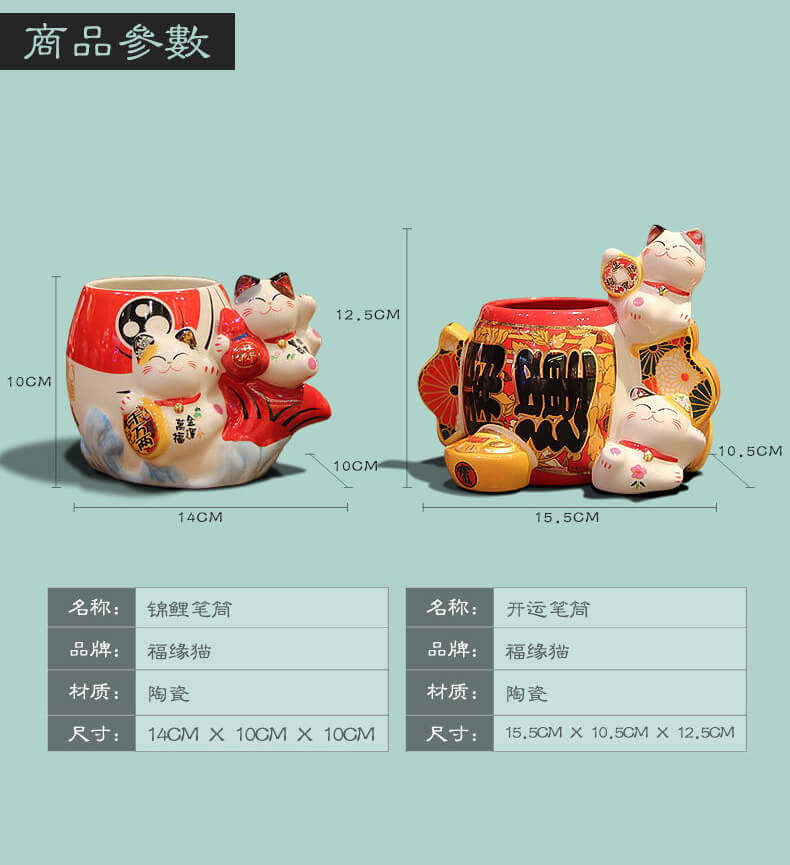 辦公室用品擺件創意可愛招財貓筆筒復古中國風桌面收納罐陶瓷禮品