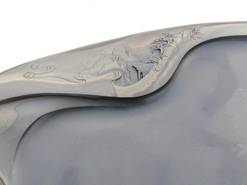 用歙硯石制作的茶盤,其獨特材質不但具有遇冷遇熱不干裂不變形,不褪色,不生異味,不易沾茶垢,易清洗等優點,而且外觀美觀大方,別致典雅高檔。同時,還富有中國傳統文化內涵,體現中國茶文化之獨特.通過獨具匠心的雕琢,更讓其在藝術欣賞與現實使用上取得一個完美的結合