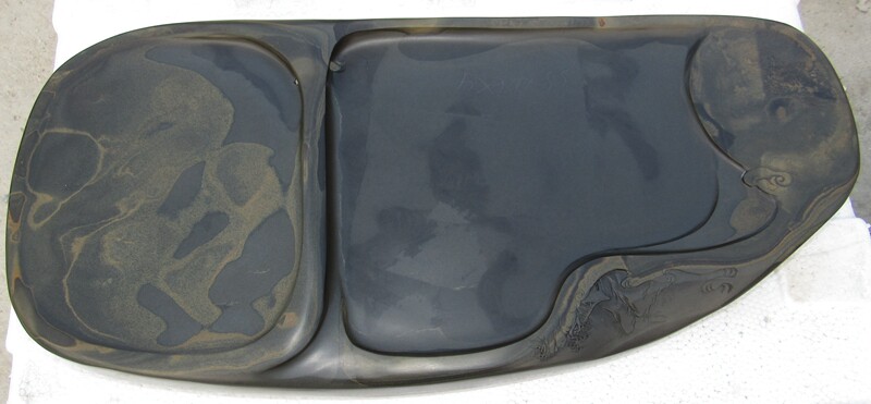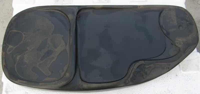 天然硯石茶盤材料,是天然而成,主體顏色天然渾成,未經人為加色,天然石質的色為本色和混色,由于天然的石頭是經過大自然的造化而成,無論色彩還是質地,人工合成都是無法仿冒的,硯石材料本意是用來選做硯為上,由于當代近時間,市場大眾興起,以硯石高檔材料為基礎上制作硯石茶盤,以硯石材料為基本,發揮傳統的硯臺手工藝的技術創造,從而生產的高檔茶盤,能用既能收藏。