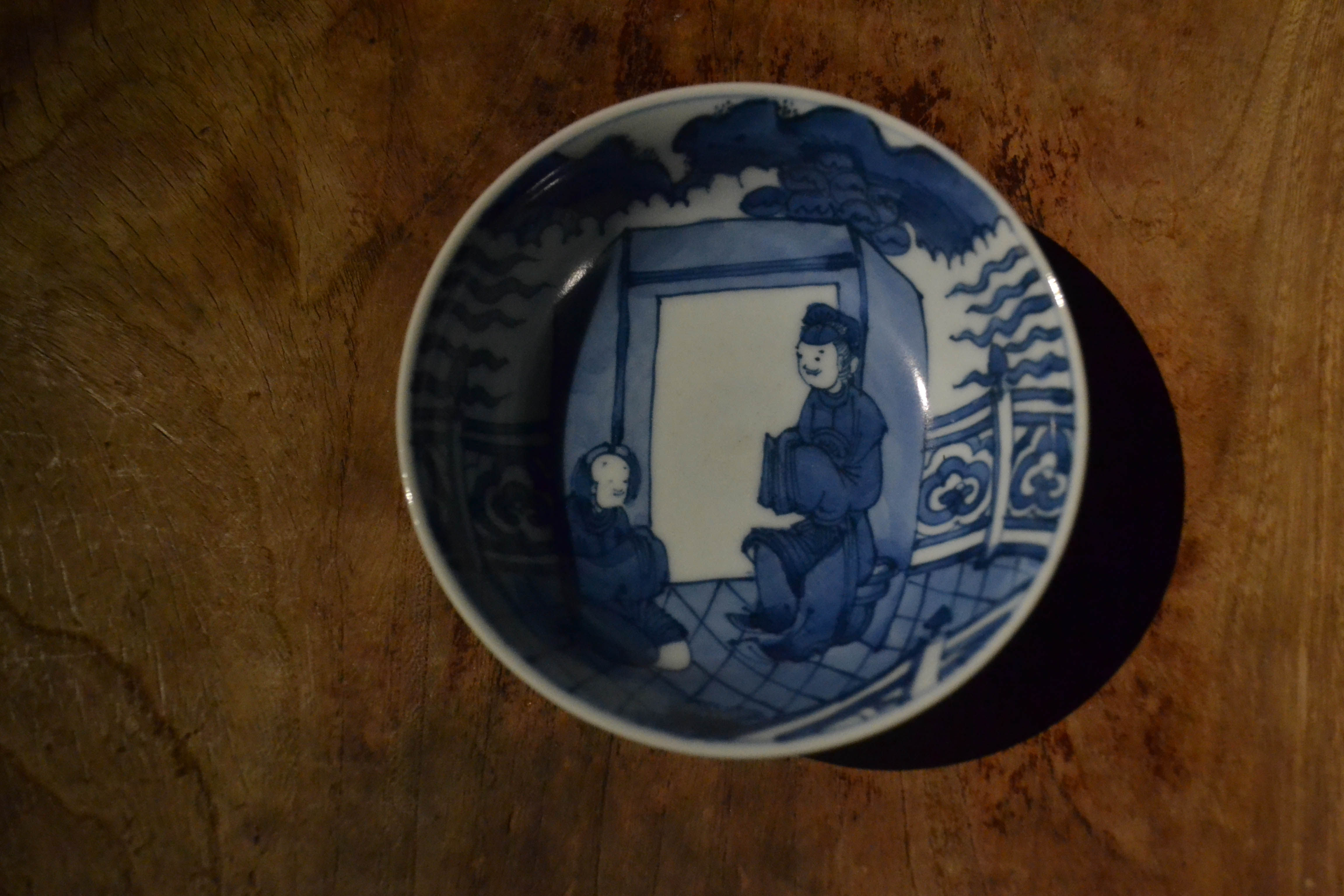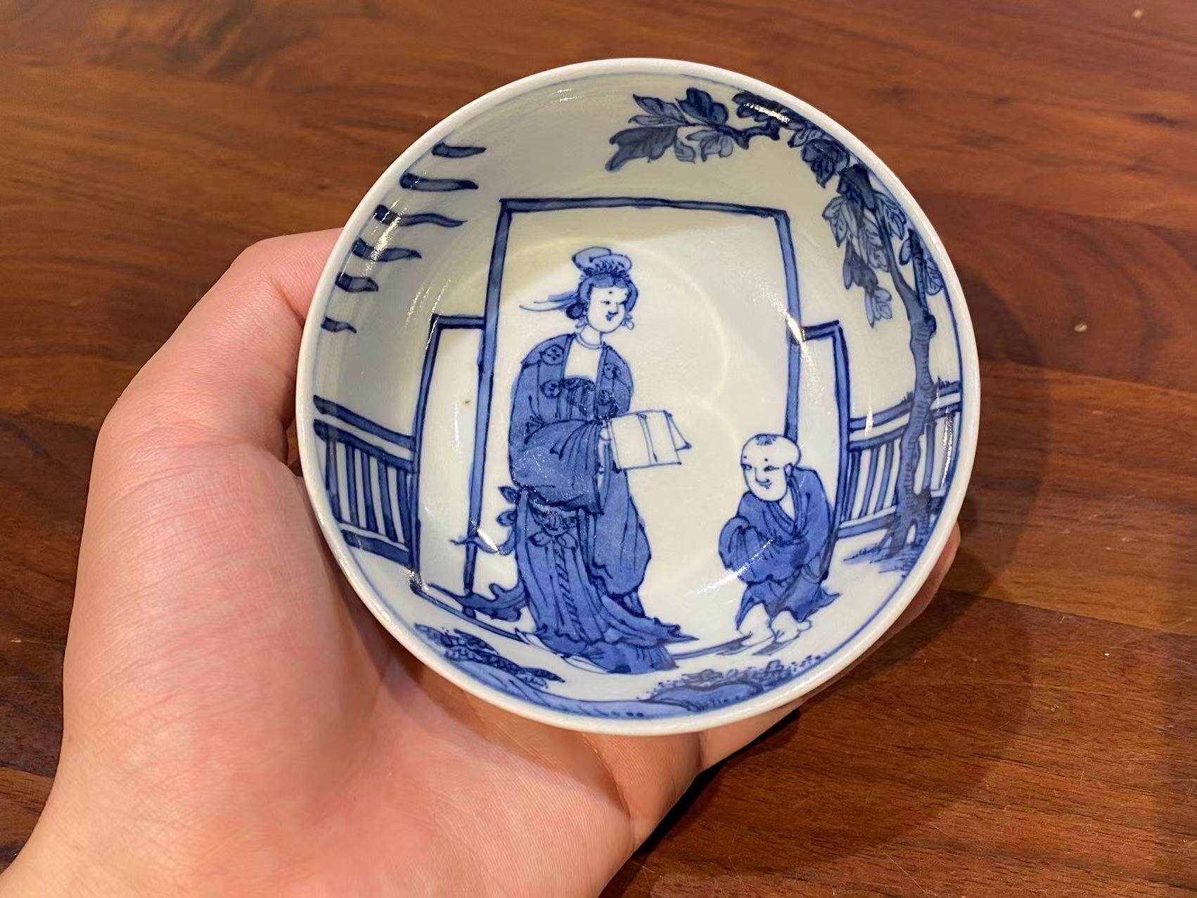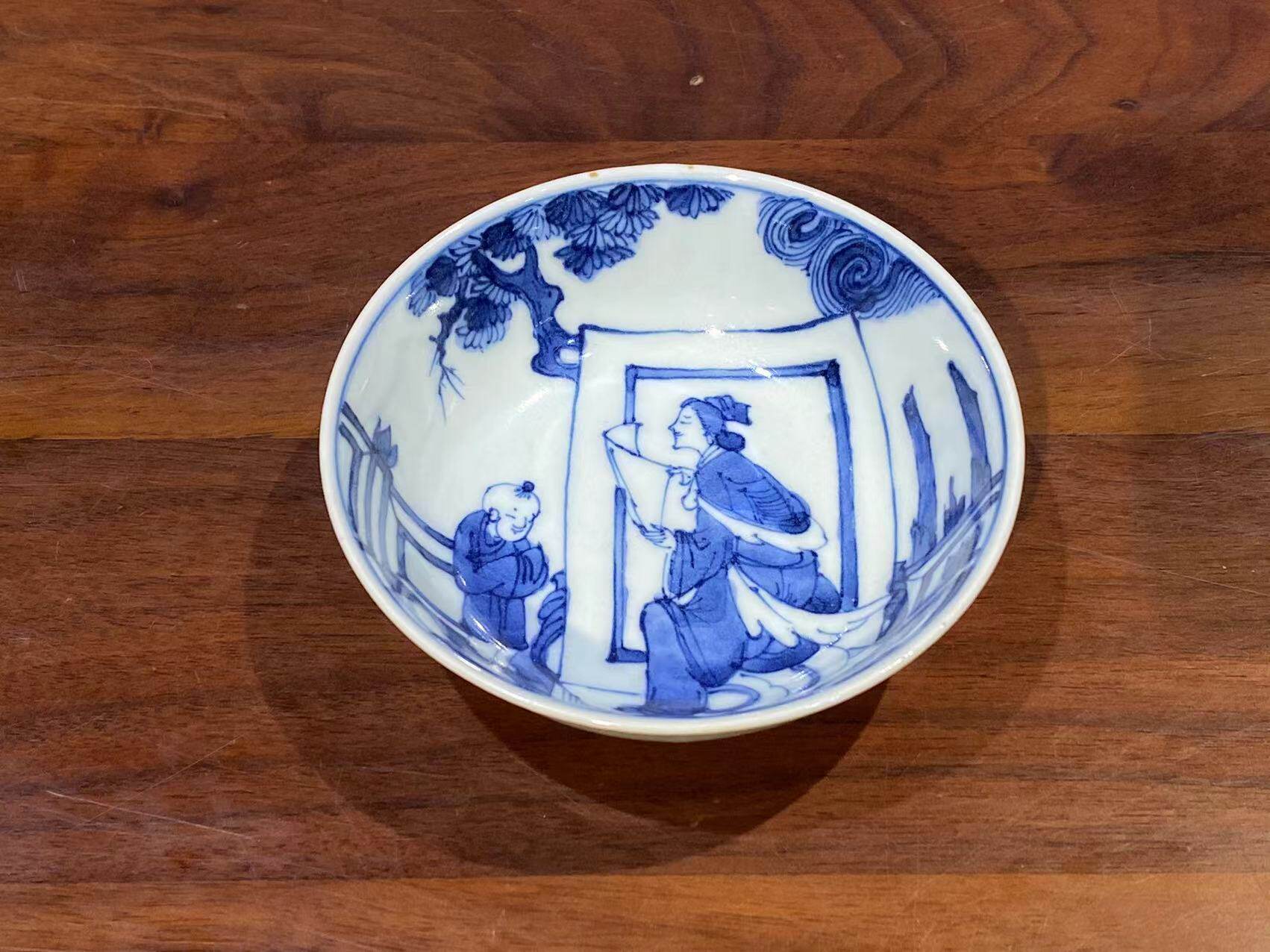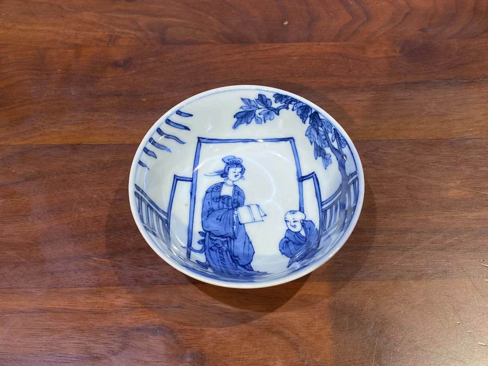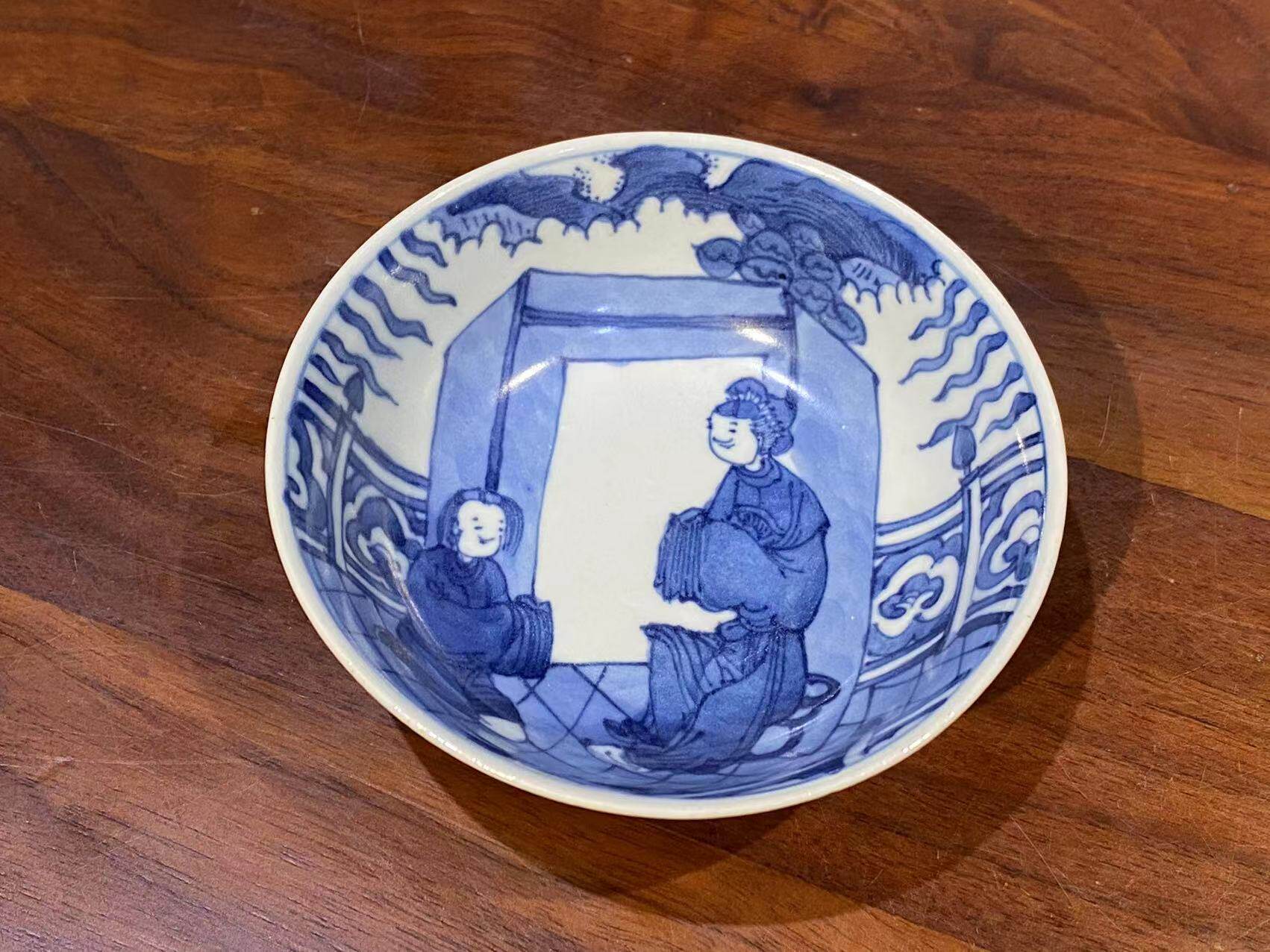 古器物明代青花瓷賞盤 手繪教子人物圖