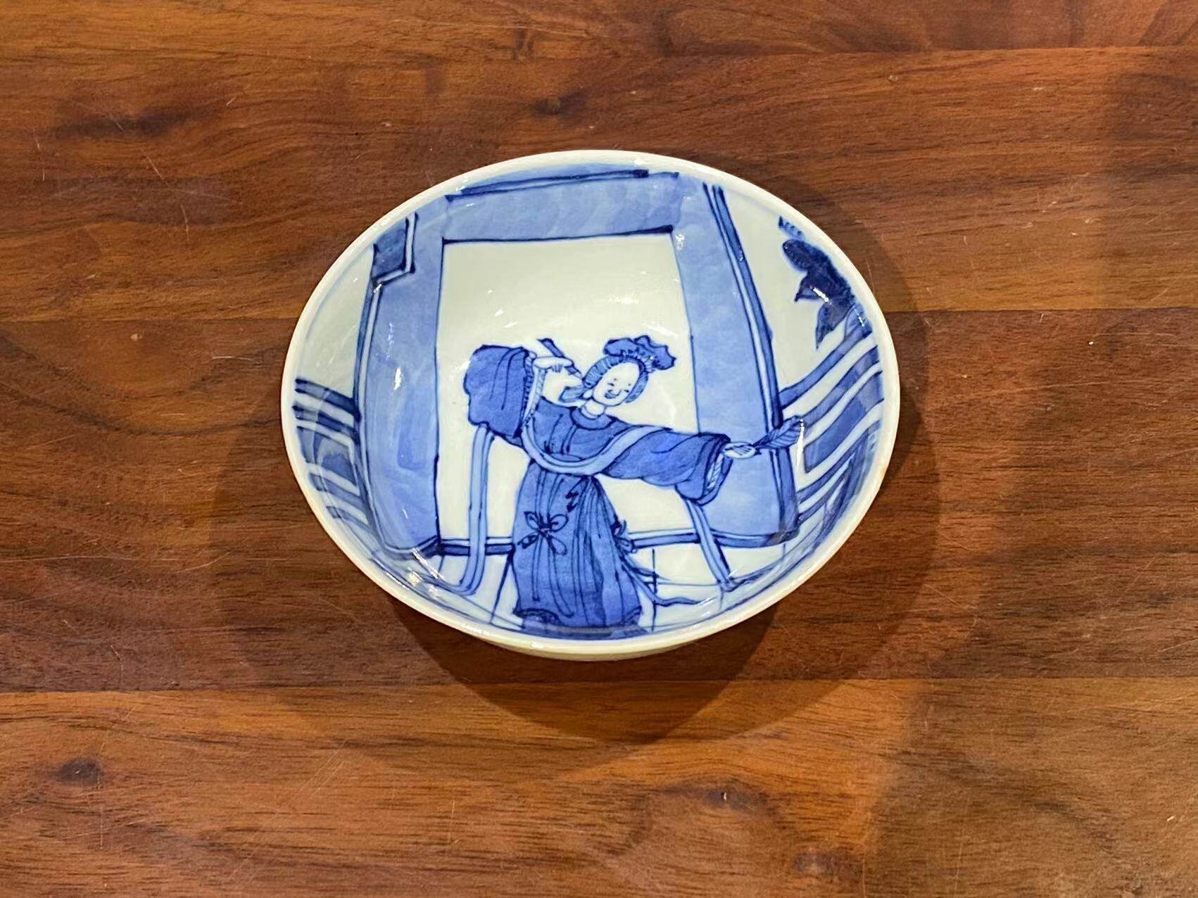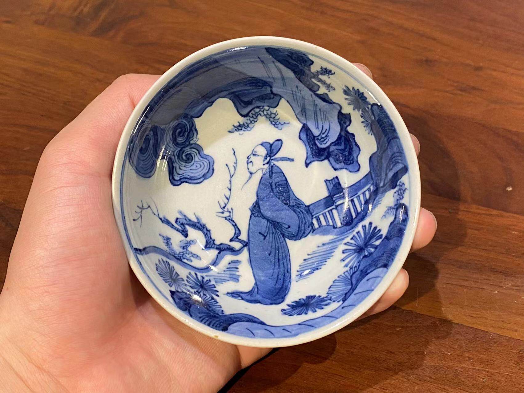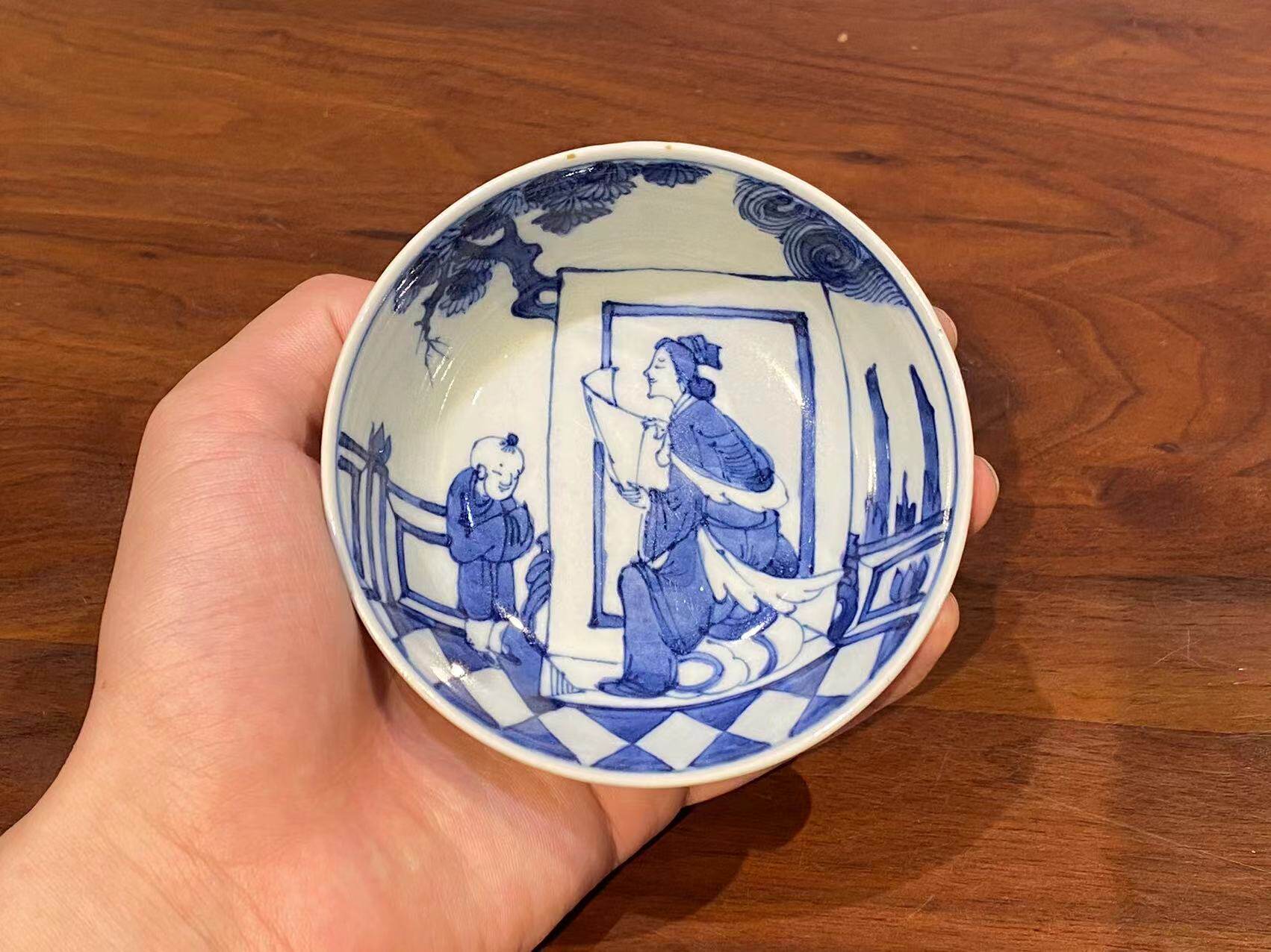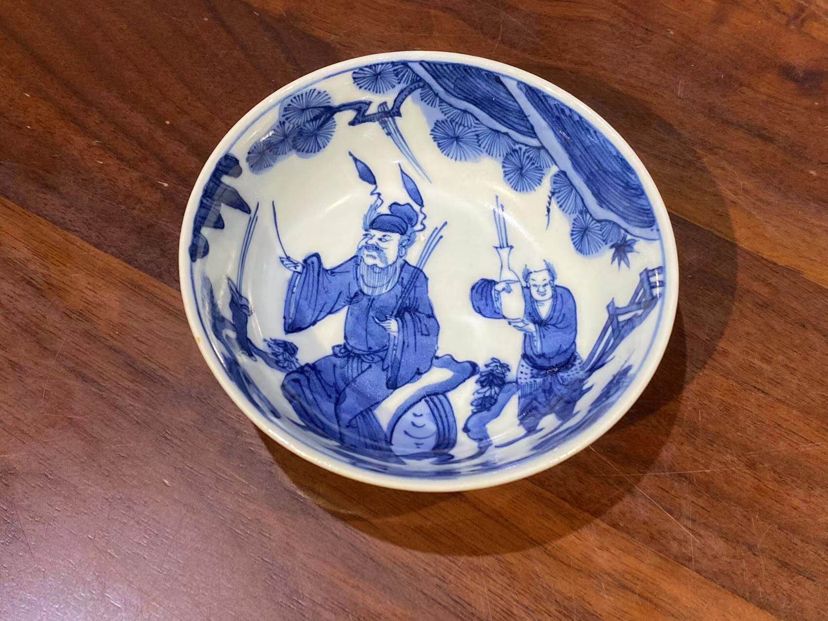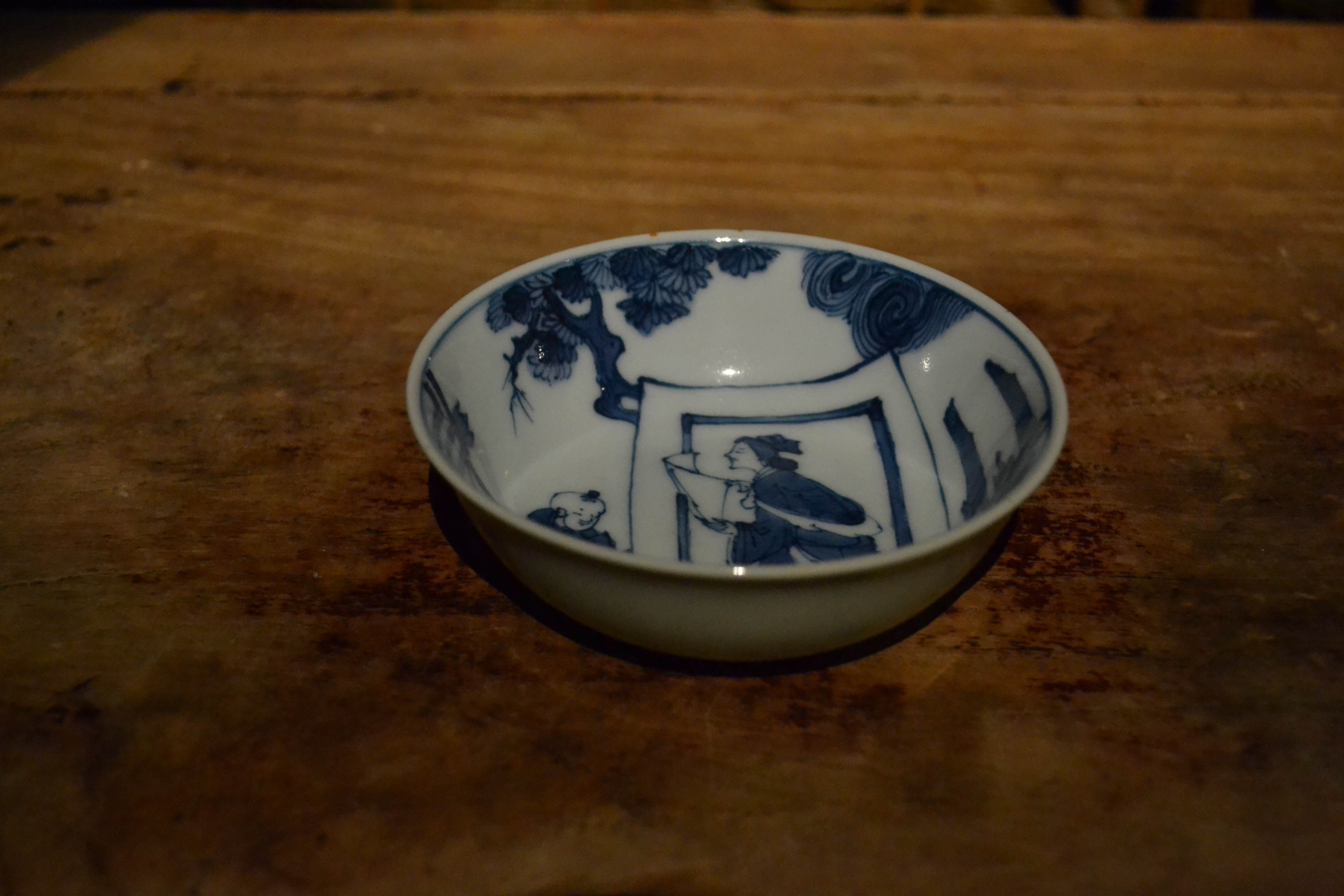 古器物明代青花瓷賞盤 手繪教子人物圖