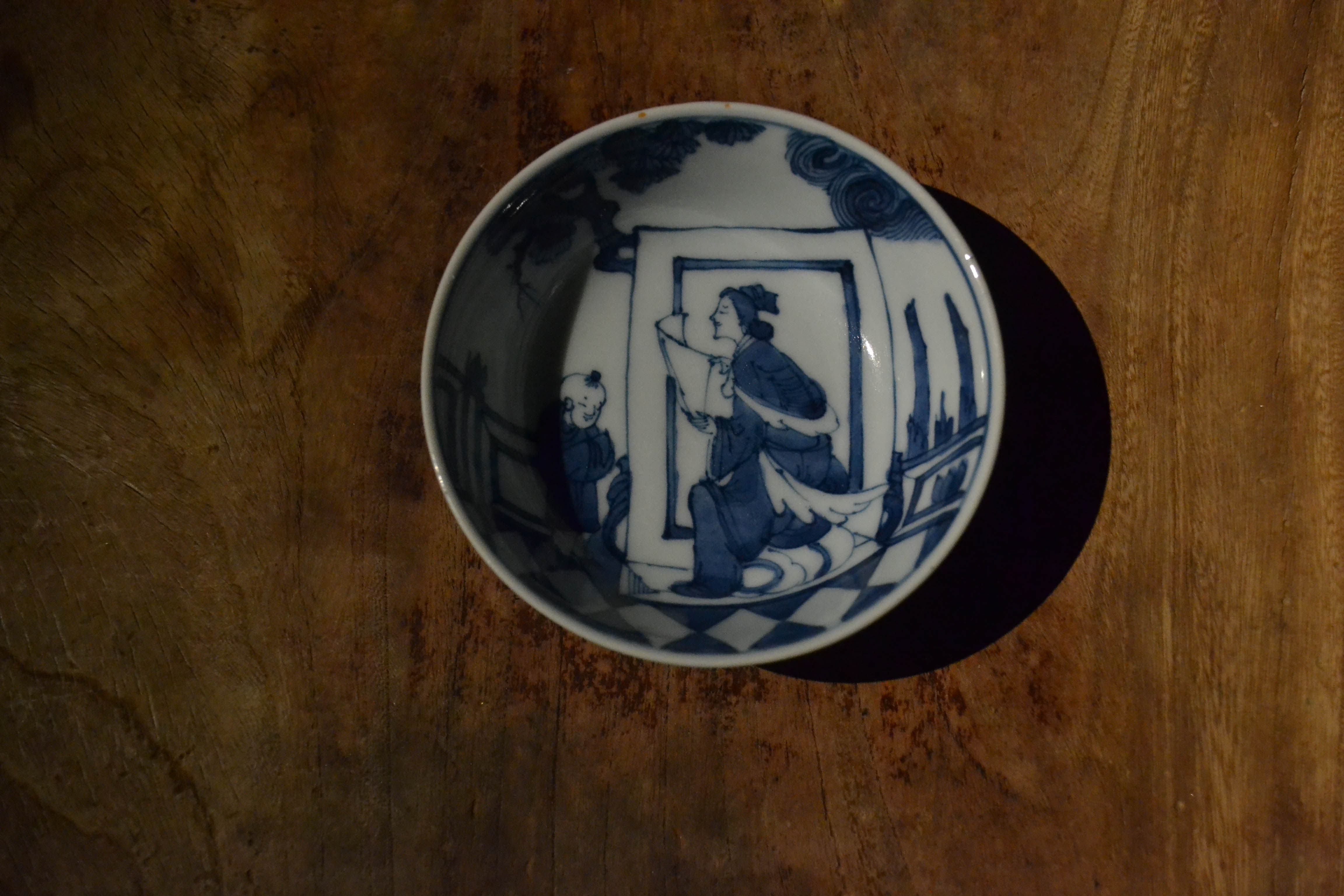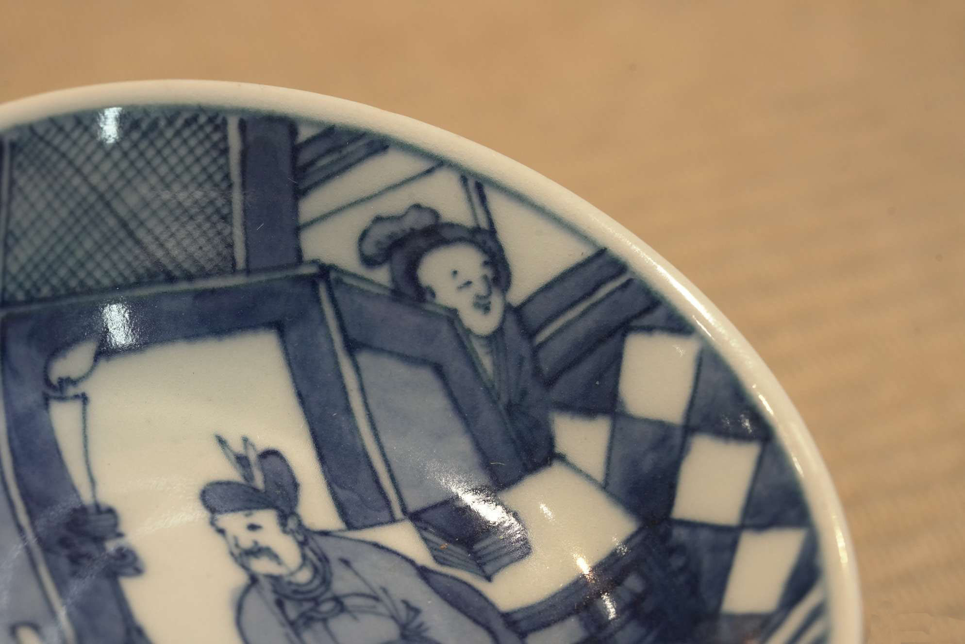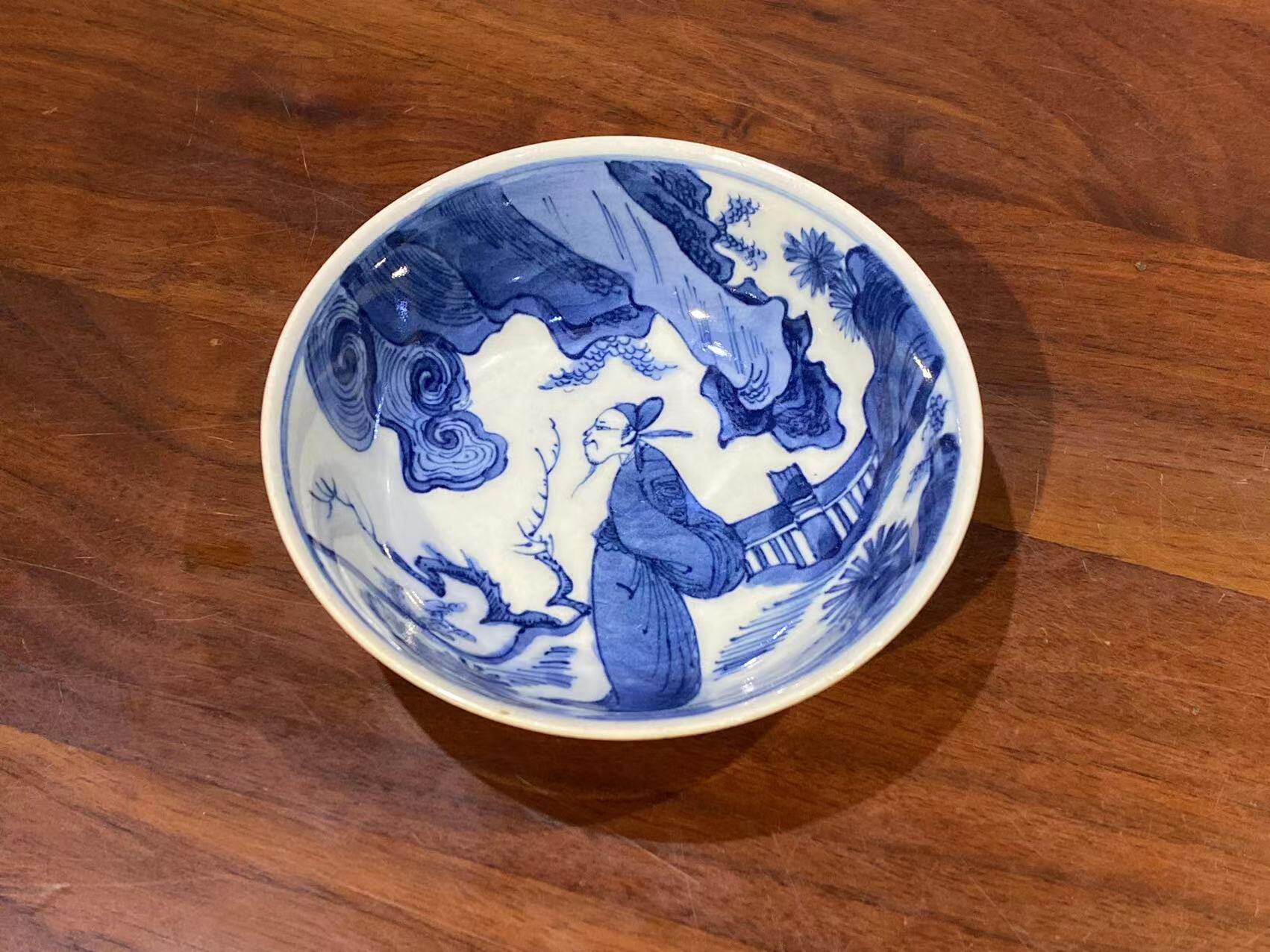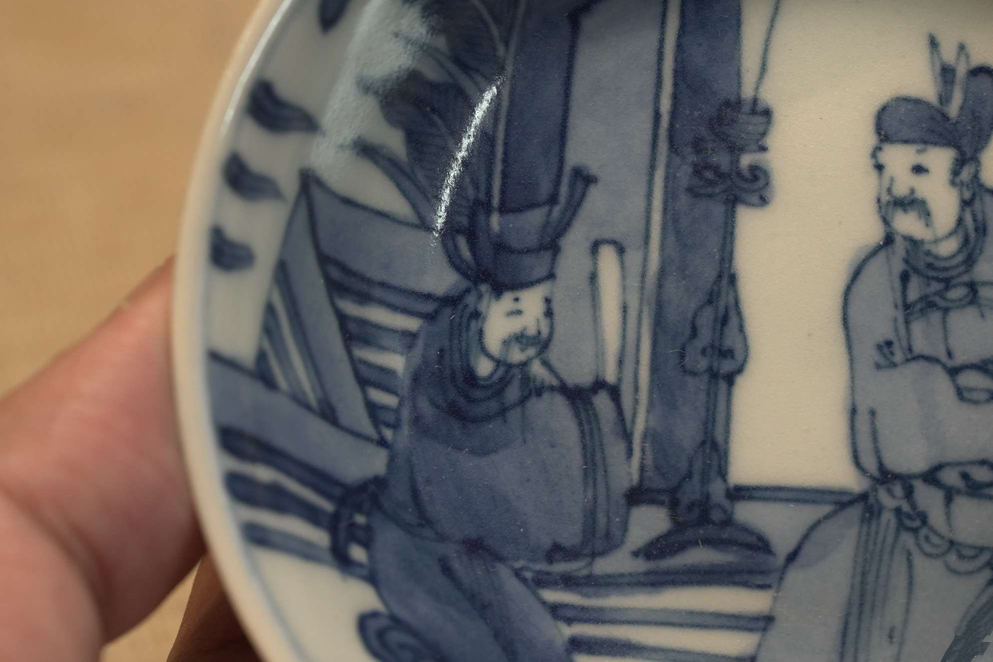 古器物明代青花瓷賞盤 手繪教子人物圖
