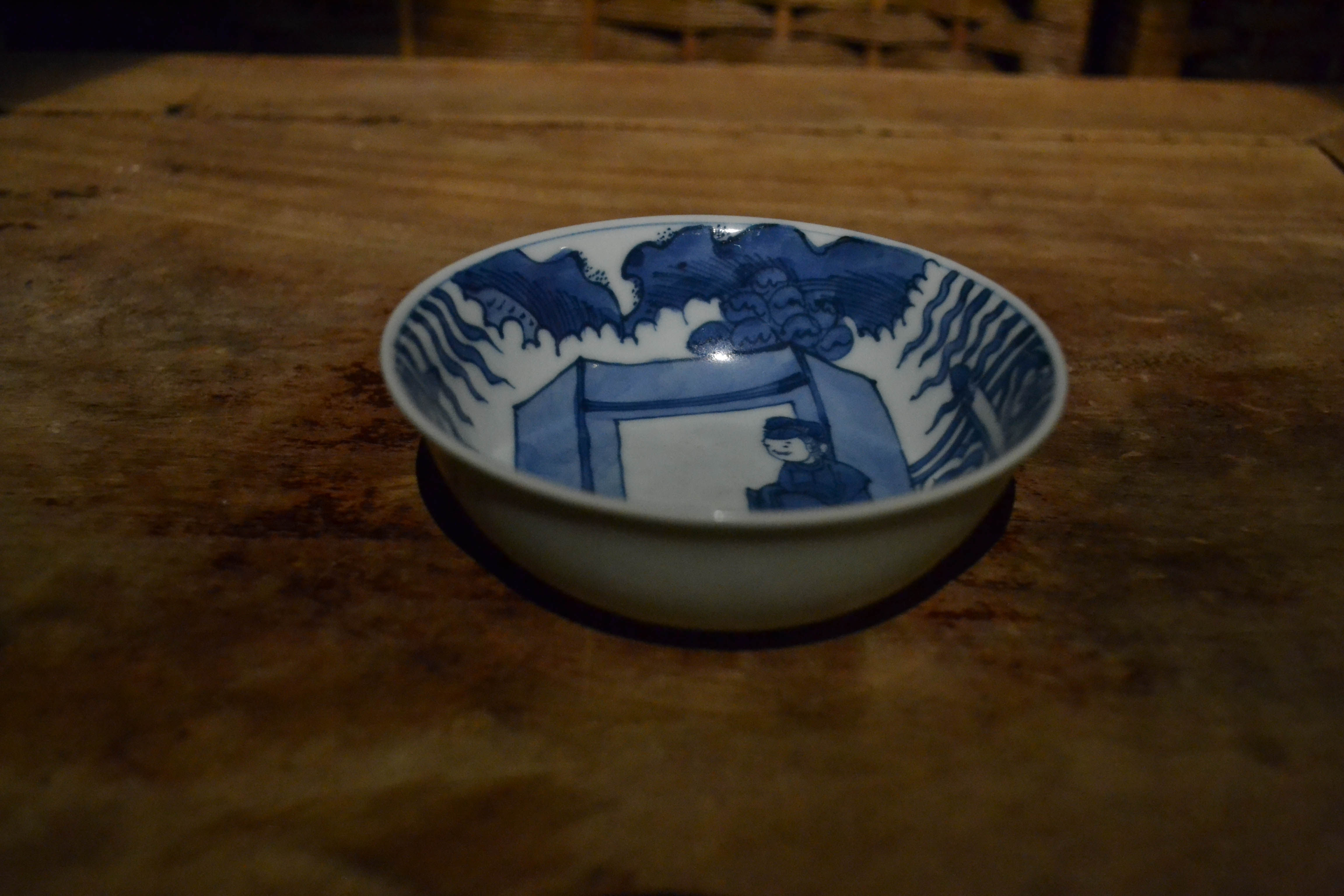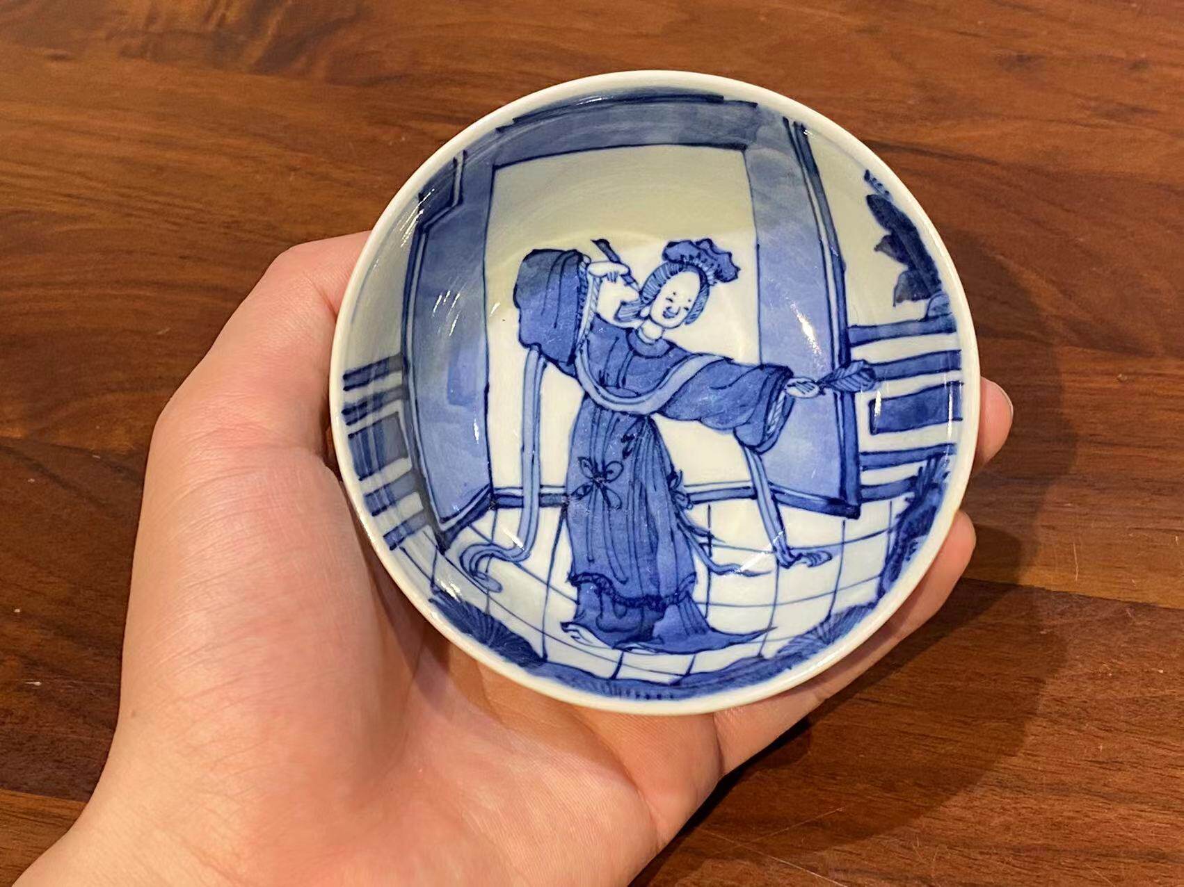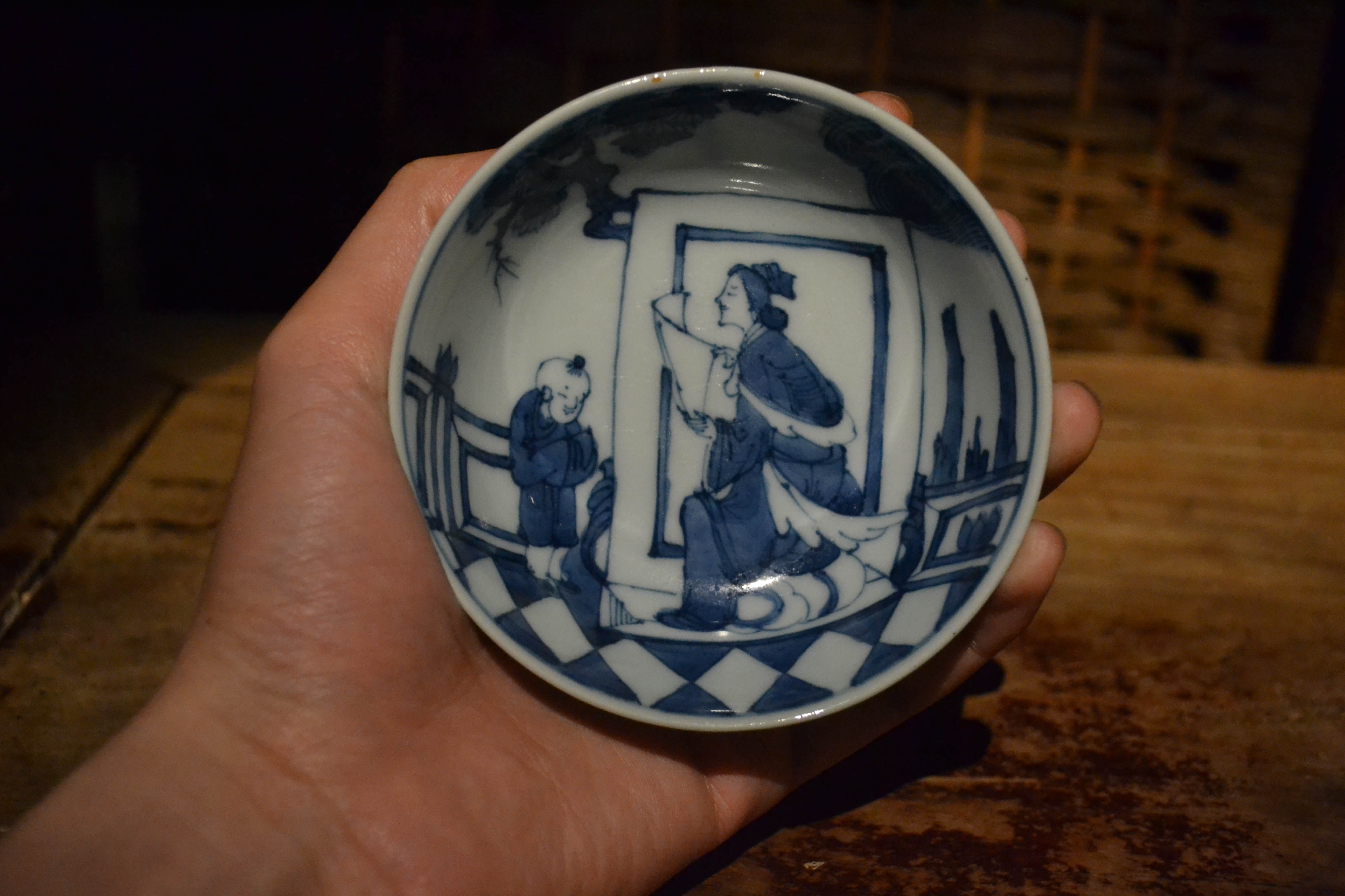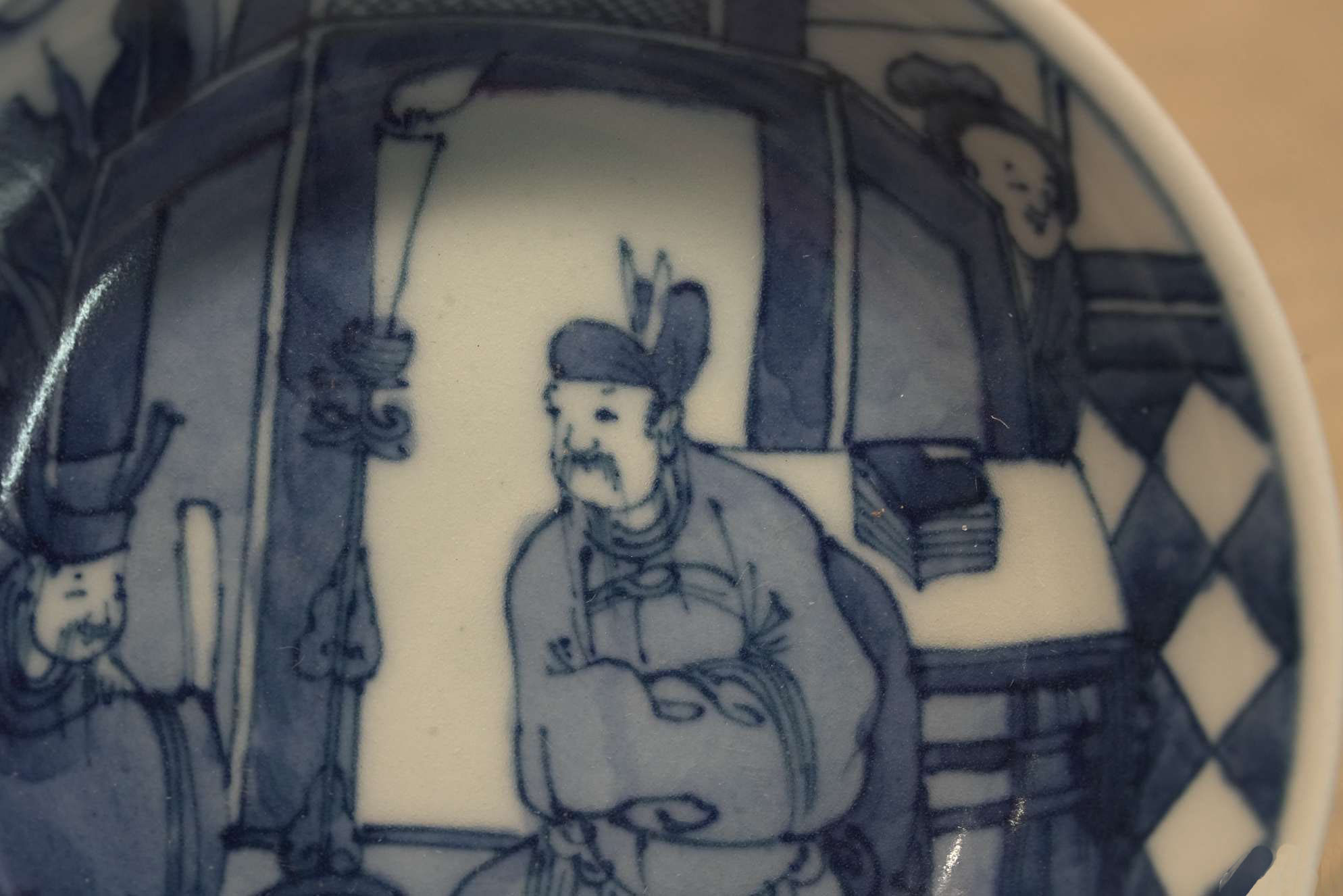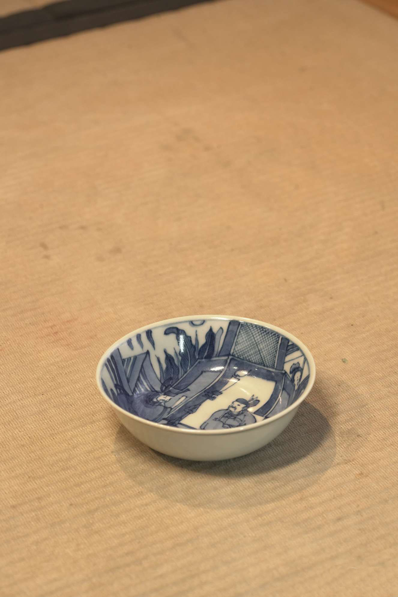 古器物明代青花瓷賞盤 手繪教子人物圖