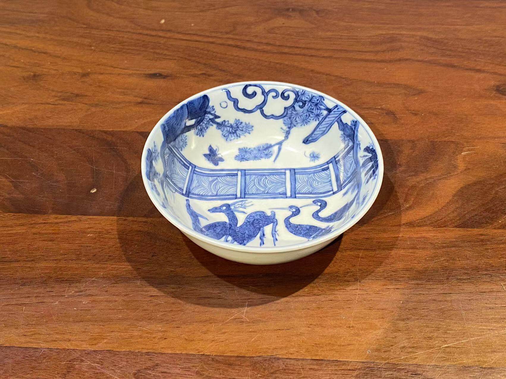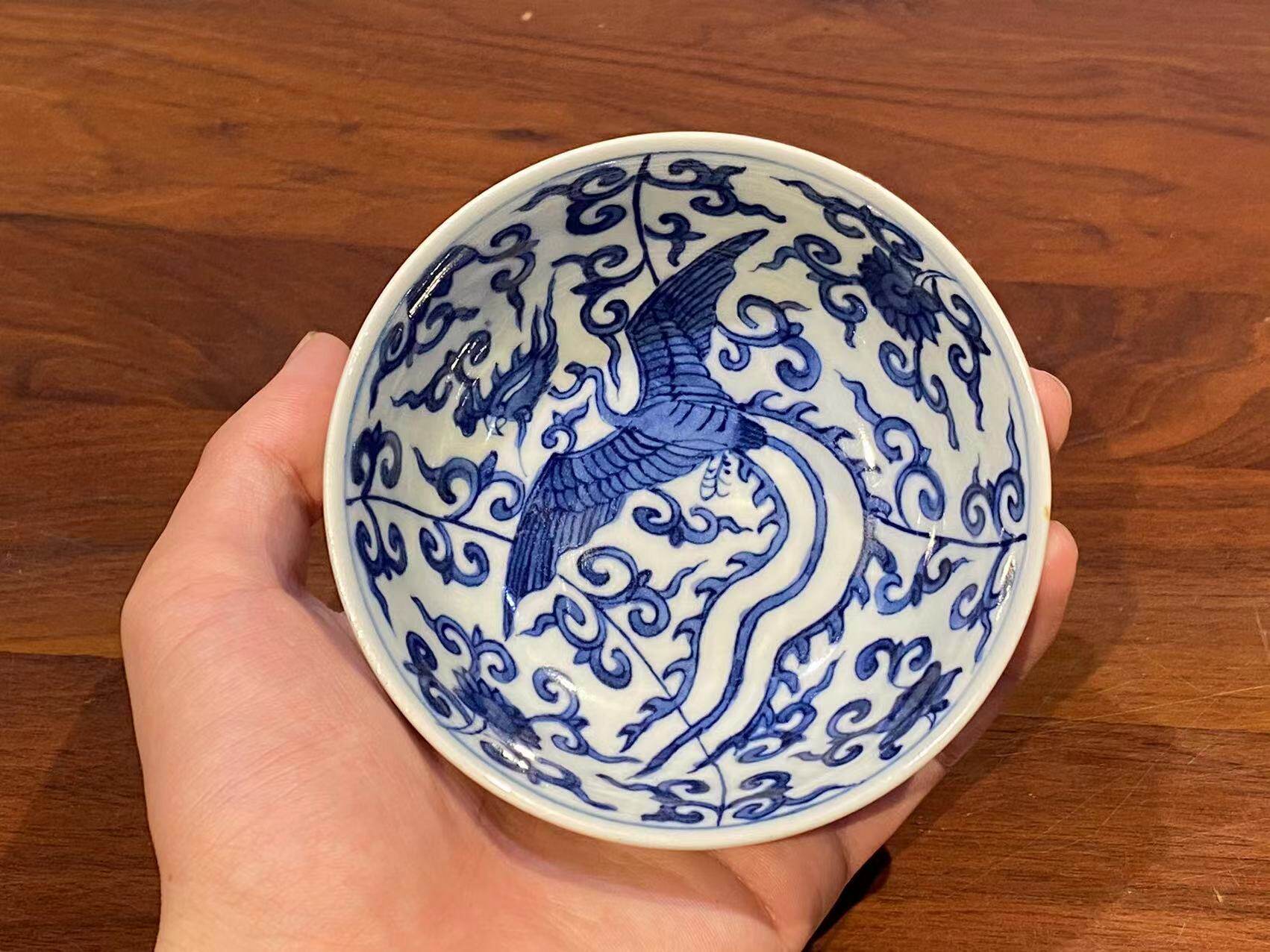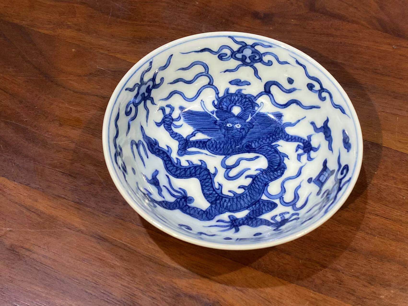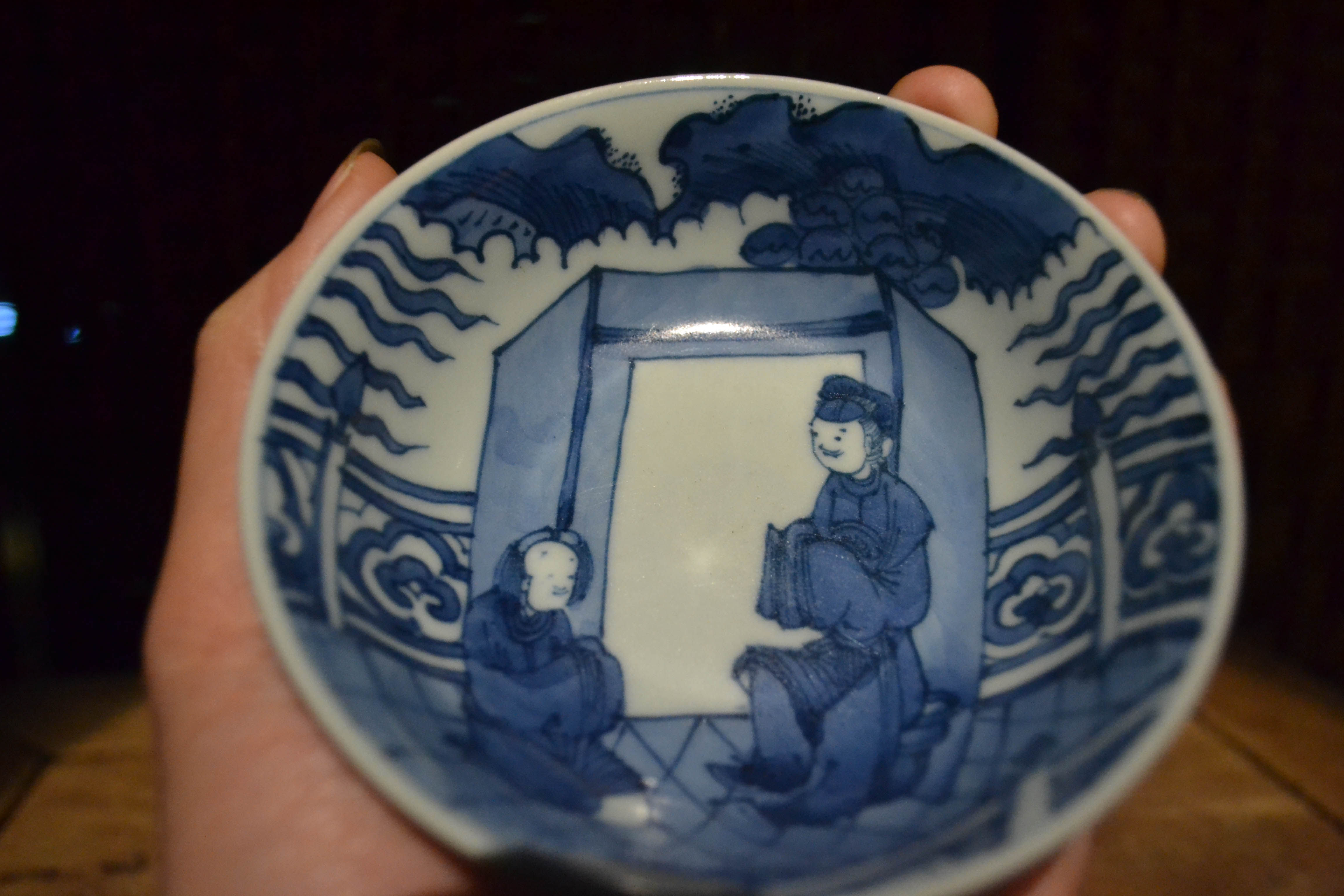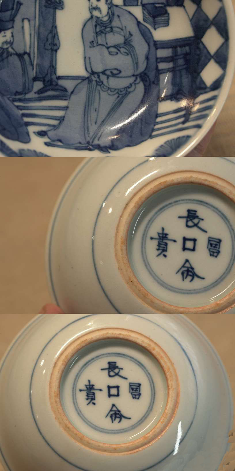 古器物明代青花瓷賞盤 手繪教子人物圖