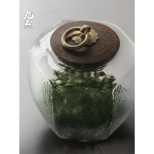 玻璃茶葉罐日式錘紋木蓋茶倉儲物罐家用功夫茶具密封儲存罐收納罐