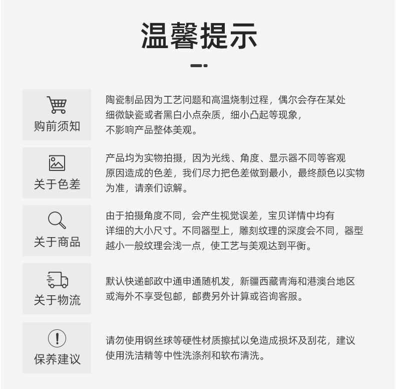 陶瓷制品可能隨機會有微瑕不完美的地方,基本不影響視覺和使用。介意的親謹慎購買。