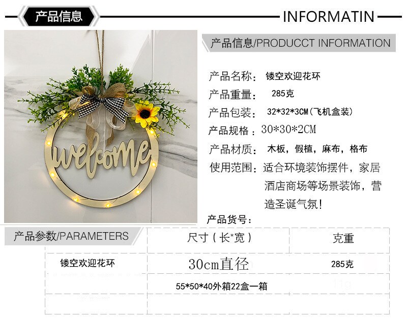 鏤空歡迎牌55*50*40外箱一箱24盒 內盒尺寸32*32*3CM單盒重量:285克單箱毛重8公斤配套1米10燈燈串,包含紐扣電池