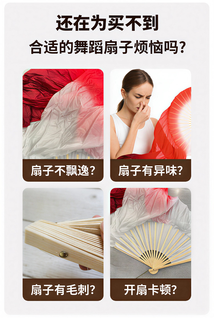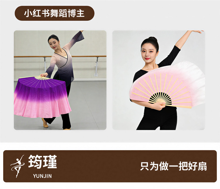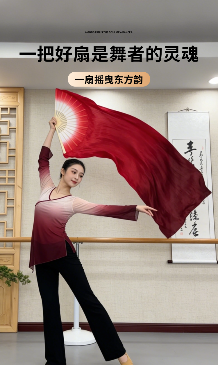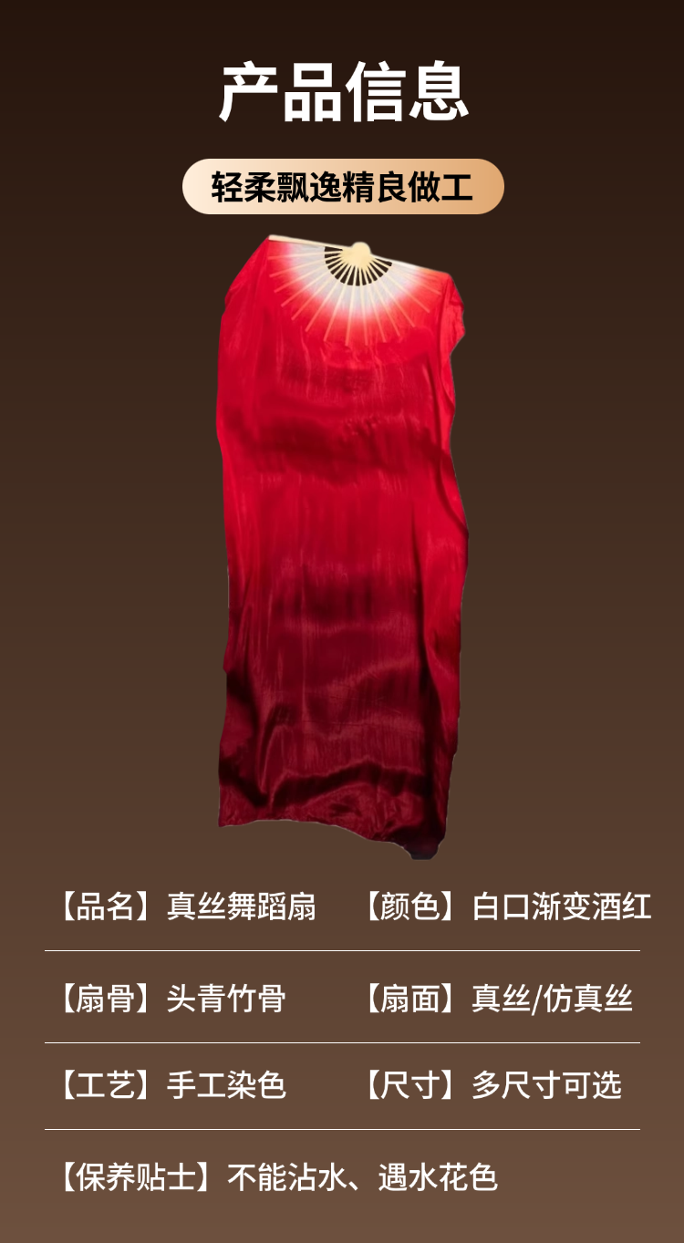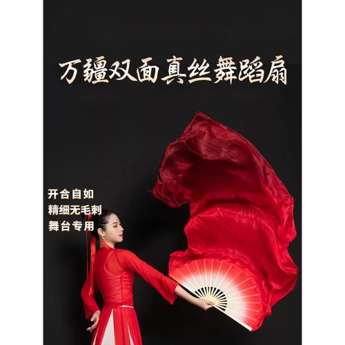 真絲舞蹈扇萬疆古典舞雙面演出酒紅道具跳舞扇子長綢扇漸變加長扇