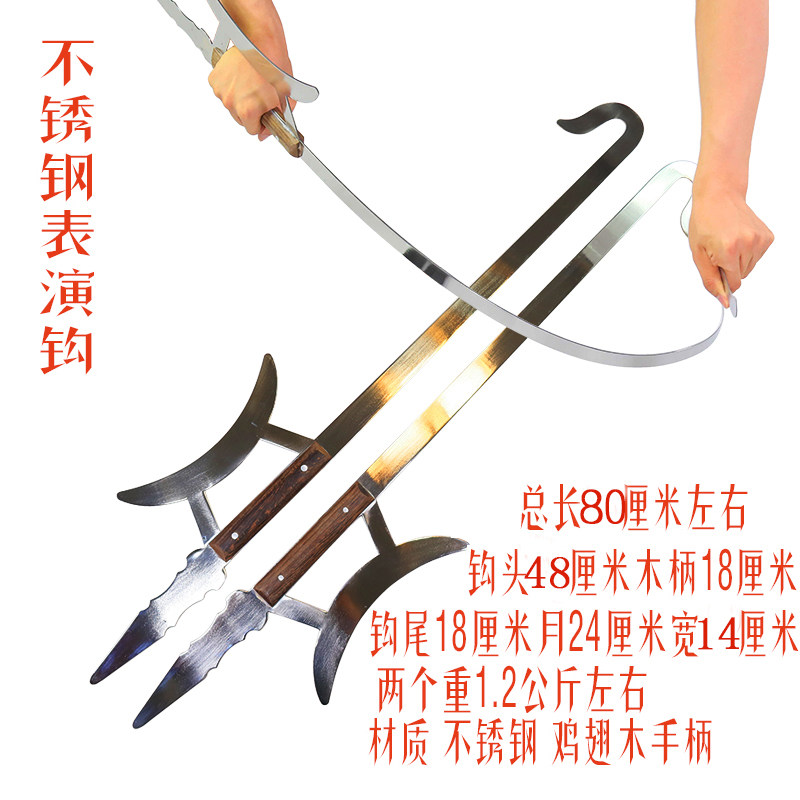 米左右可選,鉤尖處寬10厘米,月牙寬23厘米左右,護手柄長10厘米左右,單只重0.55公斤左右
