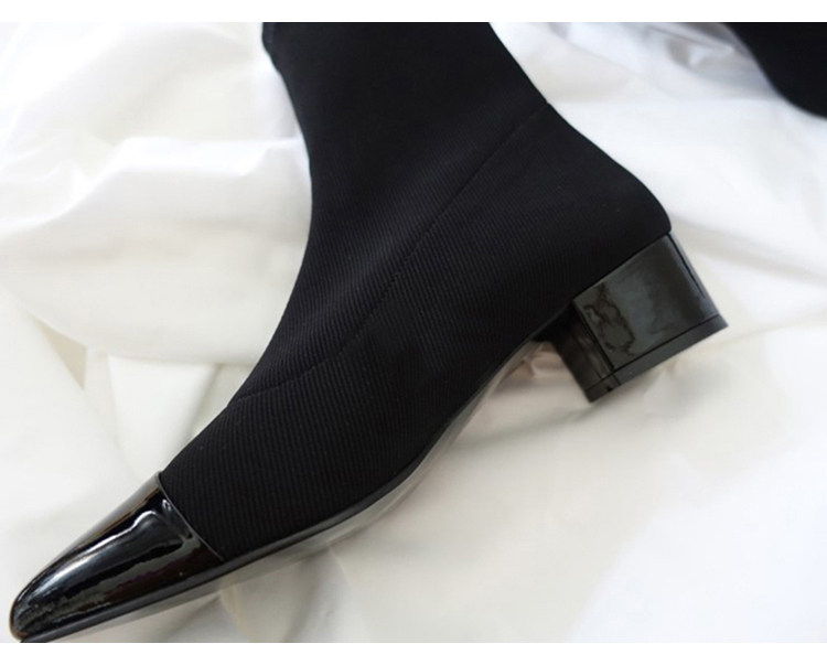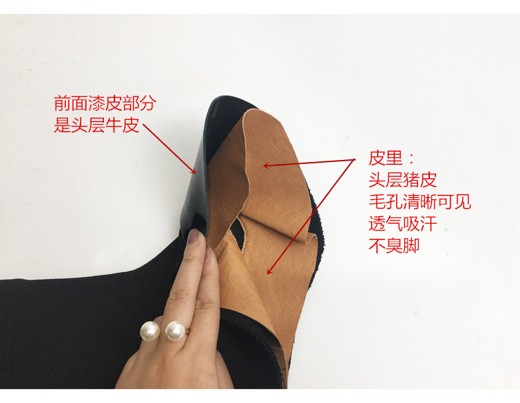 材質:彈力針織+牛漆皮