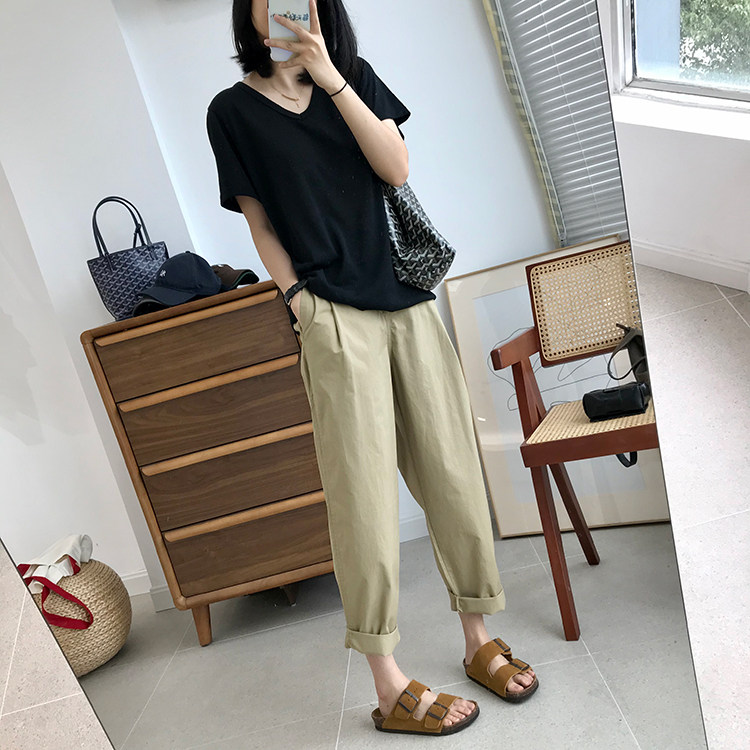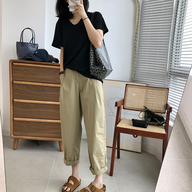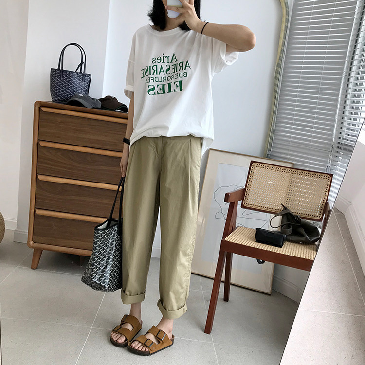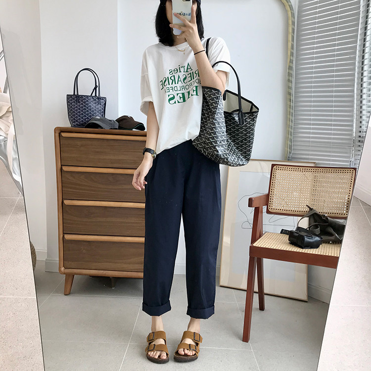 日系直筒小哈倫的褲型,整體裁剪簡潔有型