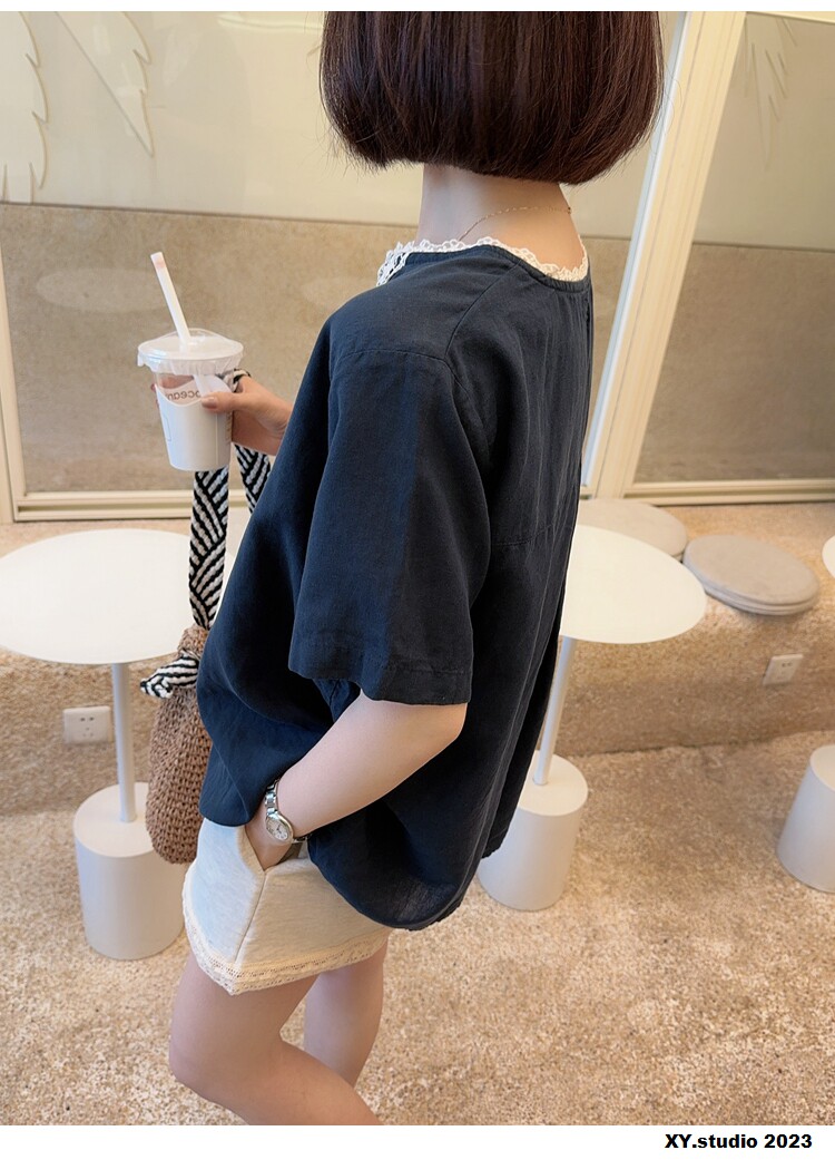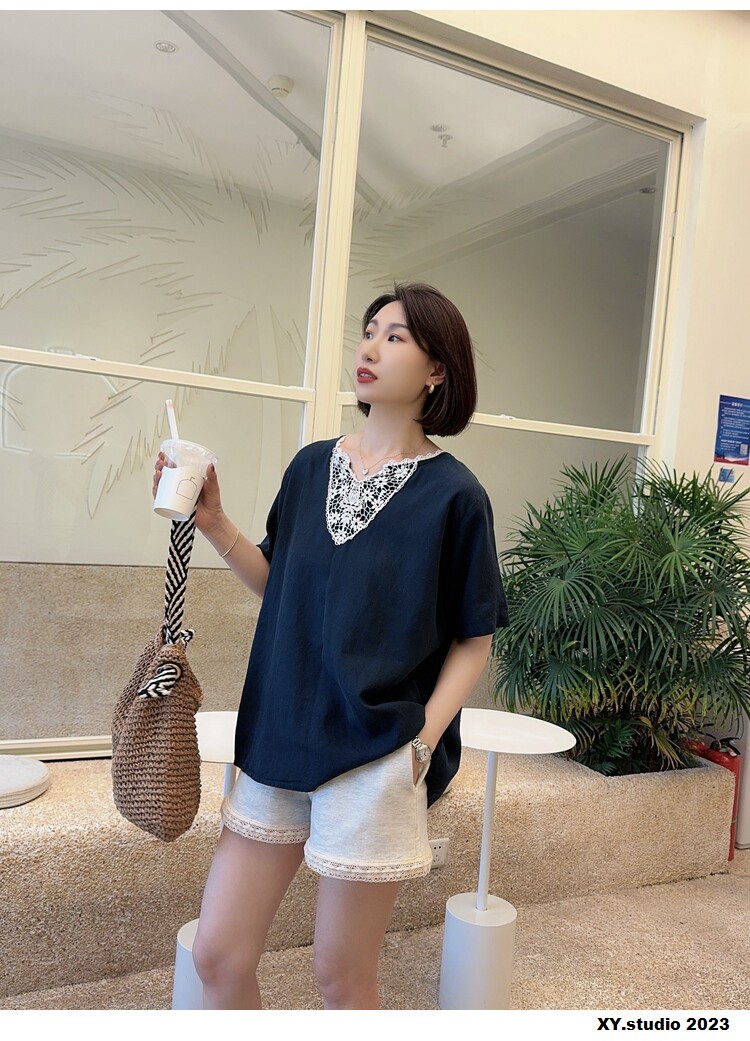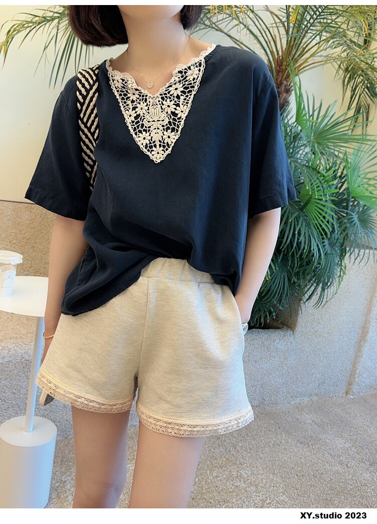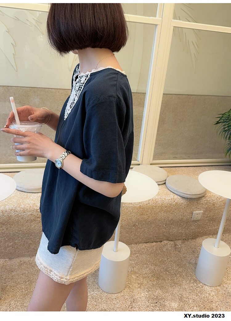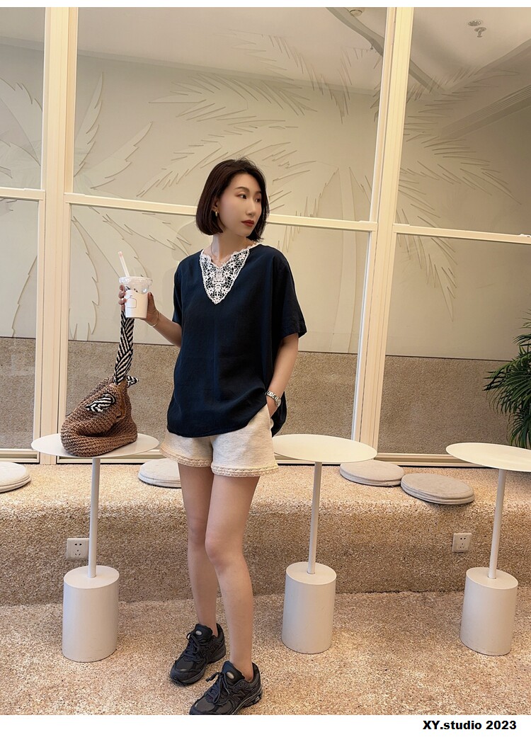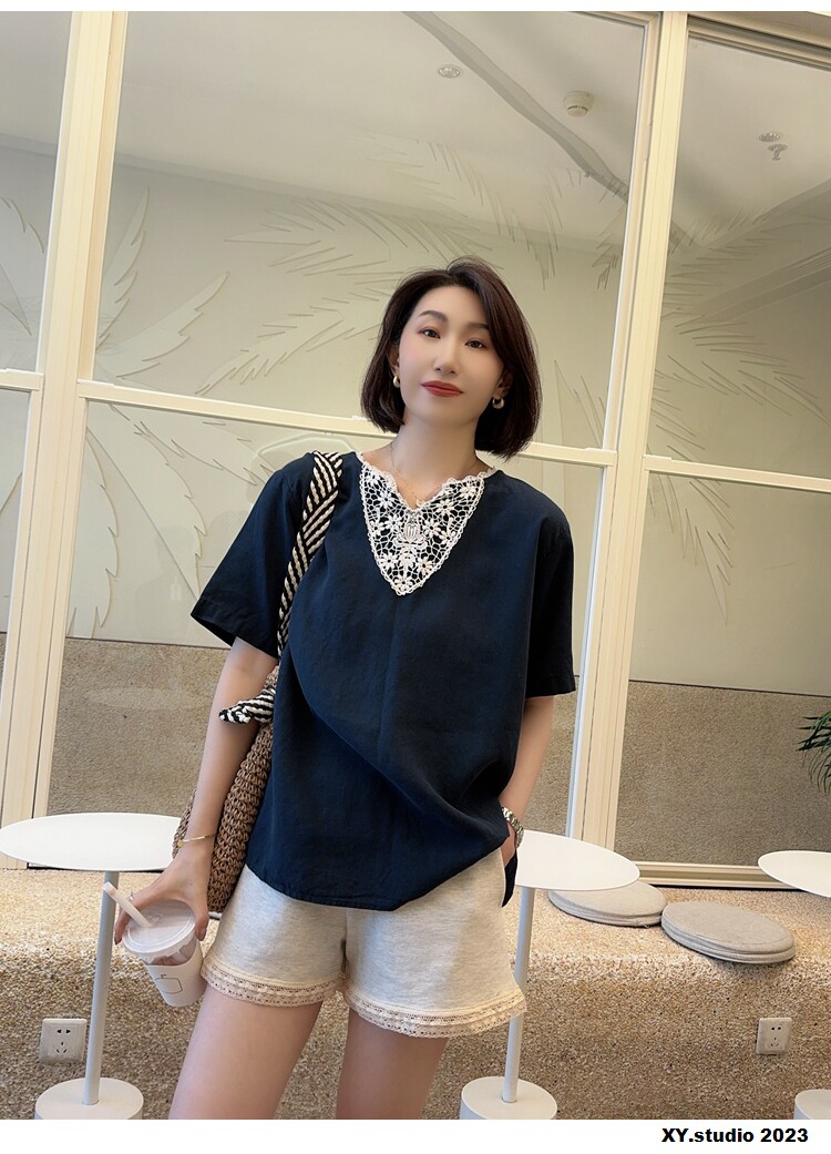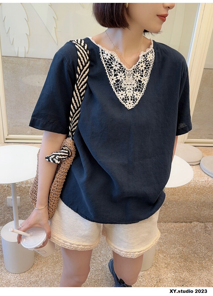 + 備注 :-鏤空蕾絲拼接 V領-