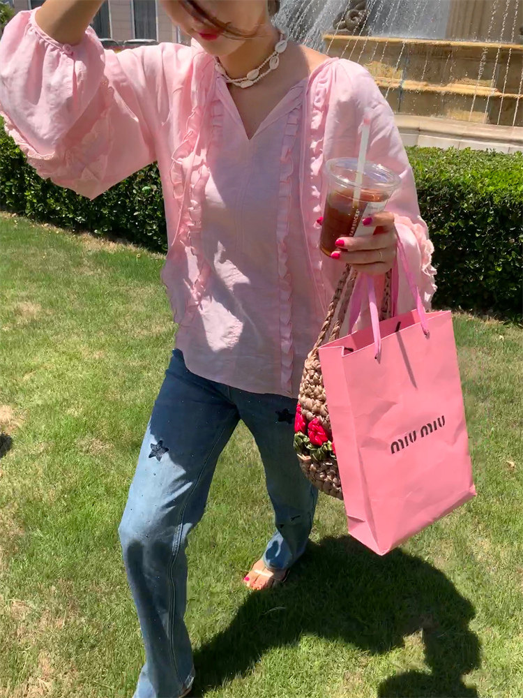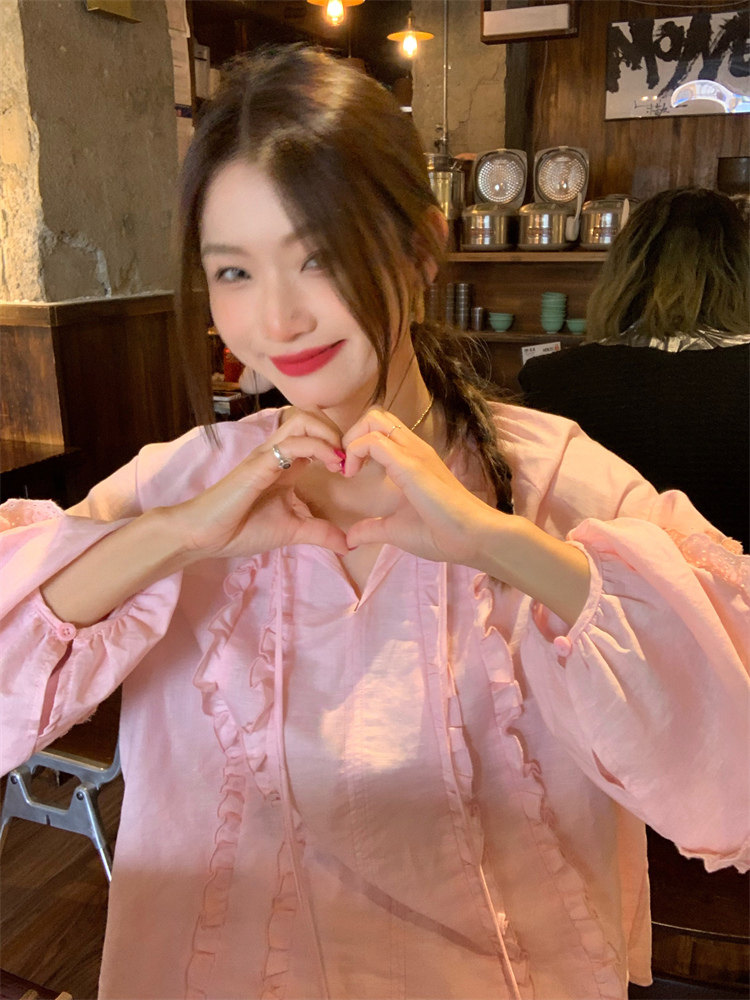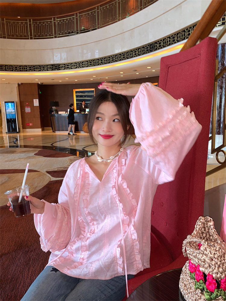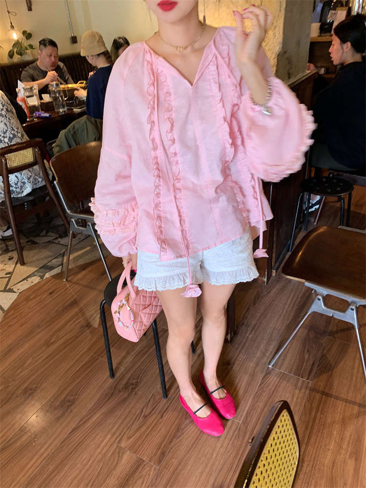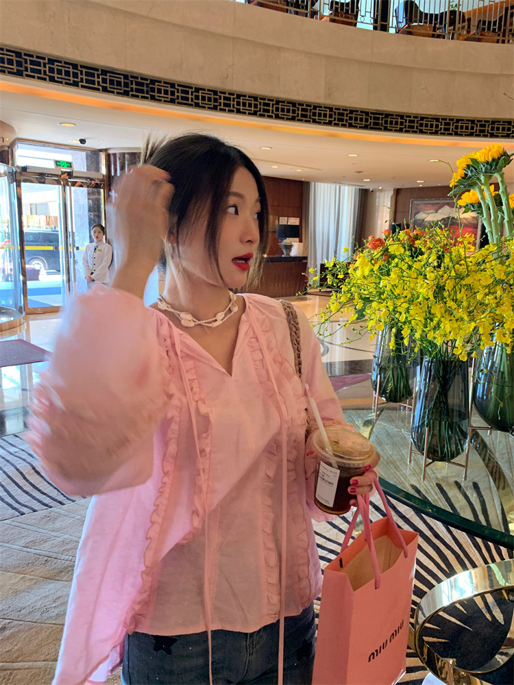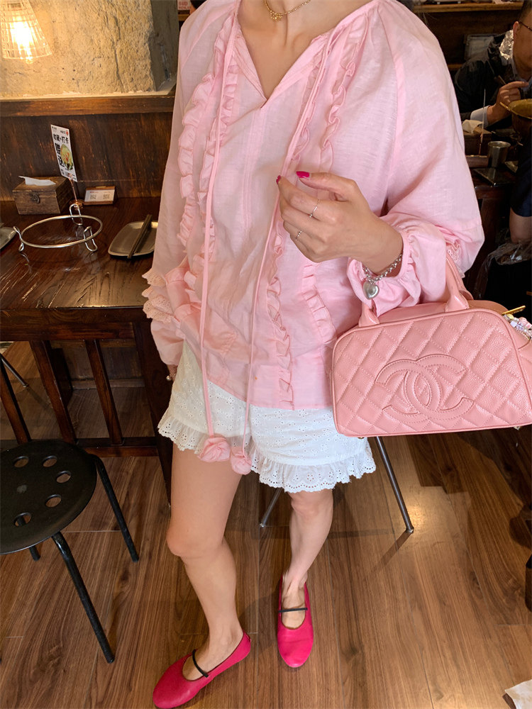 這款棉麻混紡的木耳邊襯衫也tai有氛圍感了吧!
