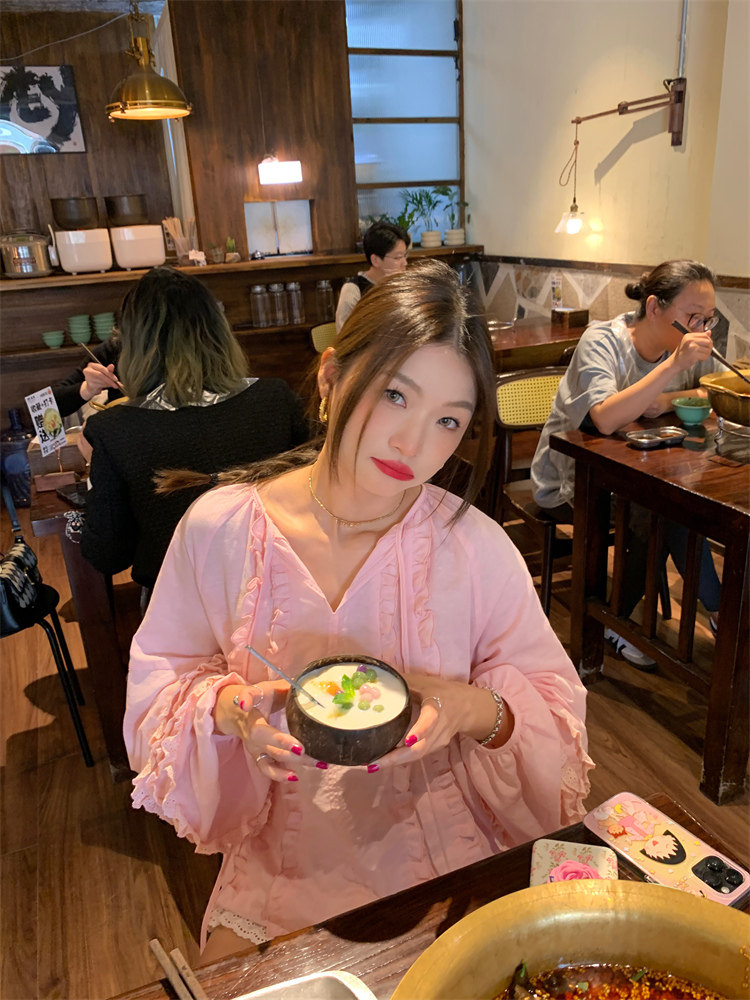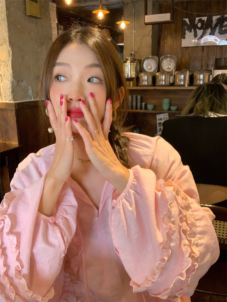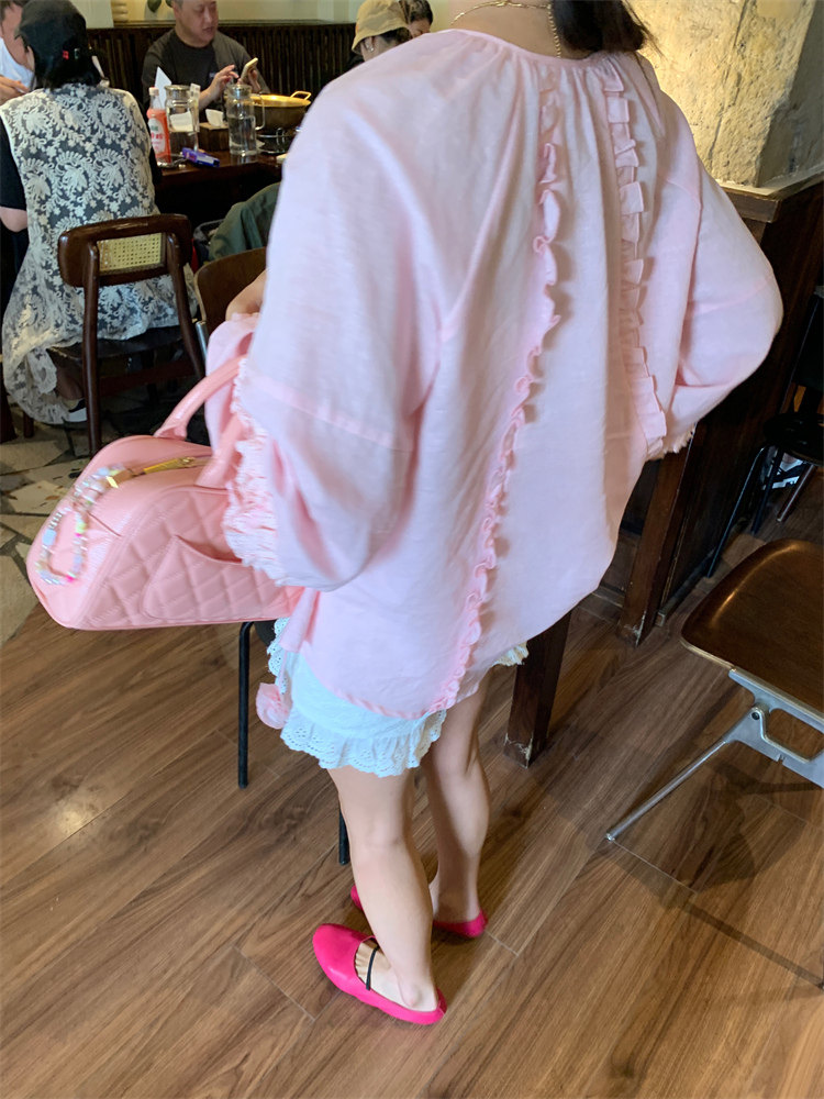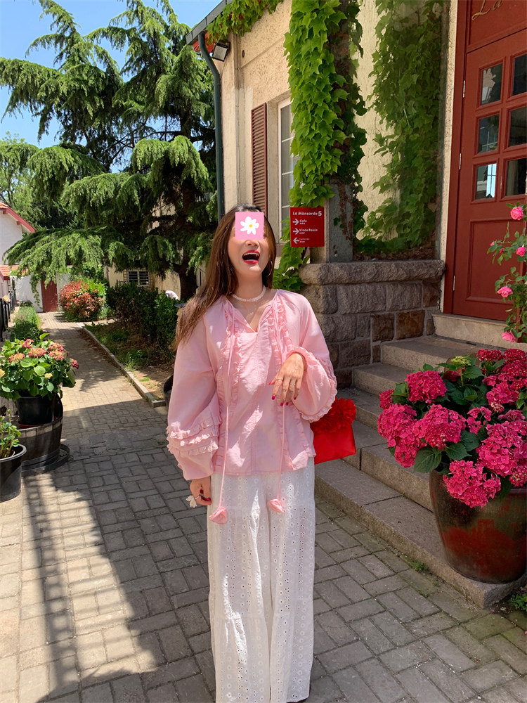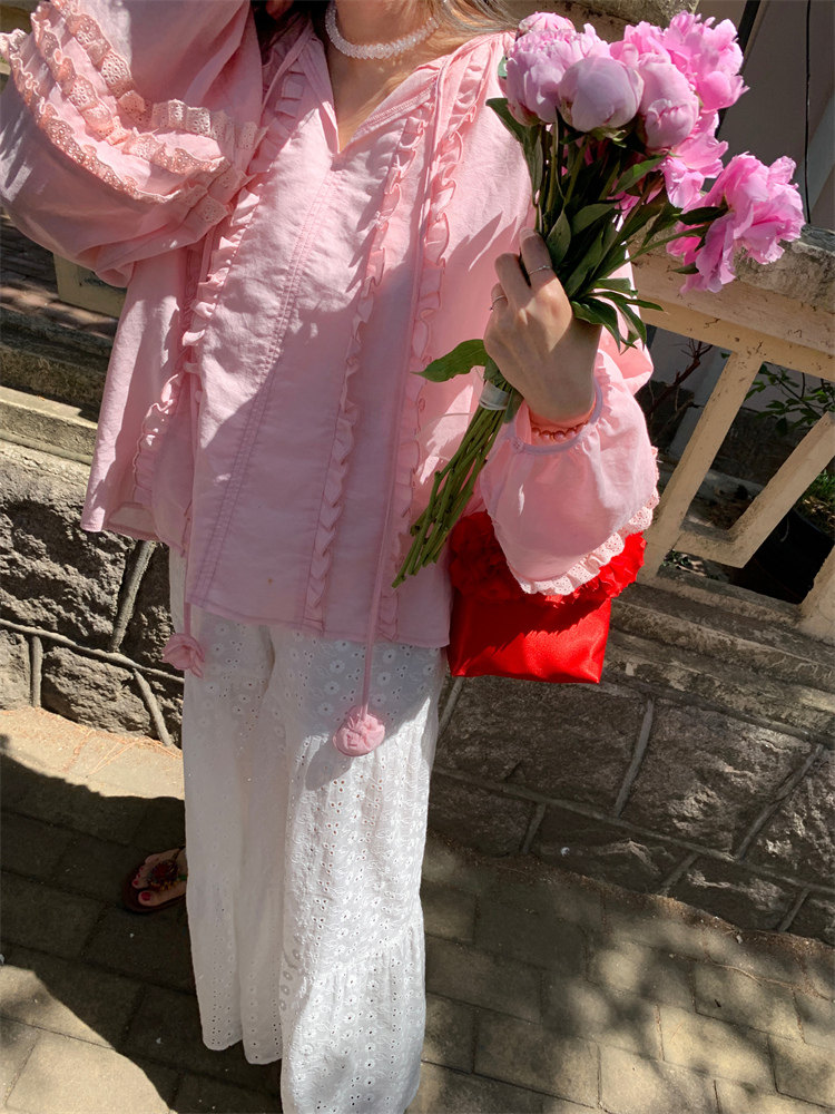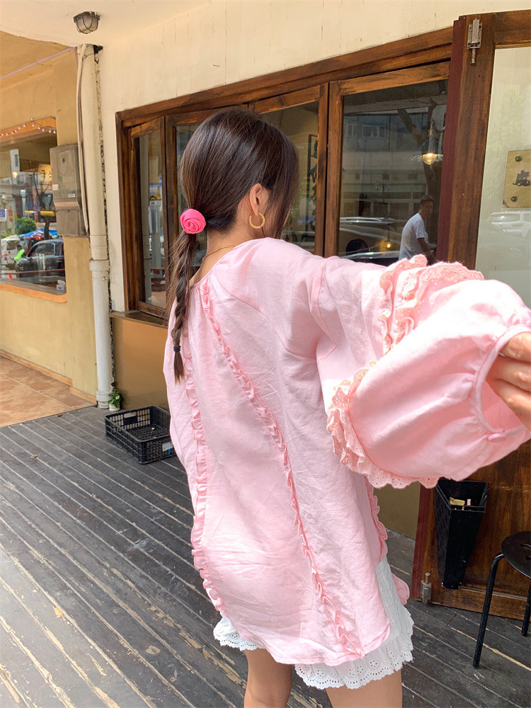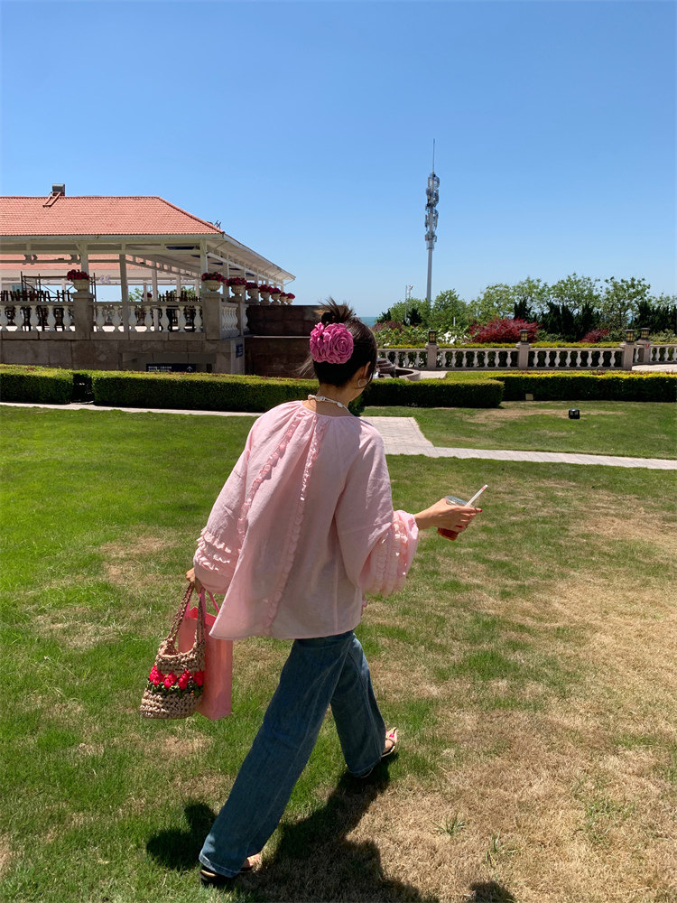 這款棉麻混紡的木耳邊襯衫也tai有氛圍感了吧!