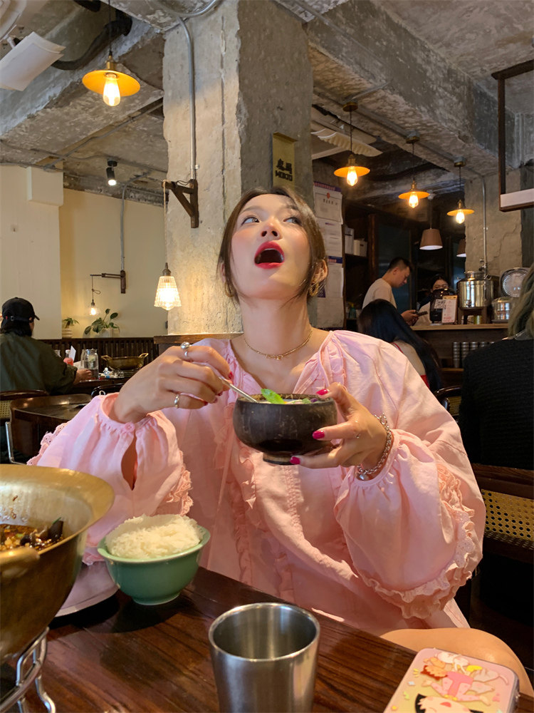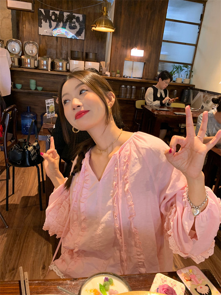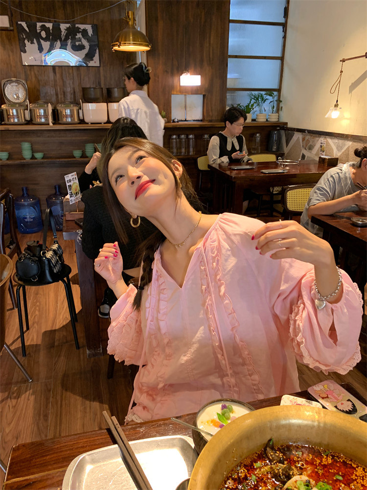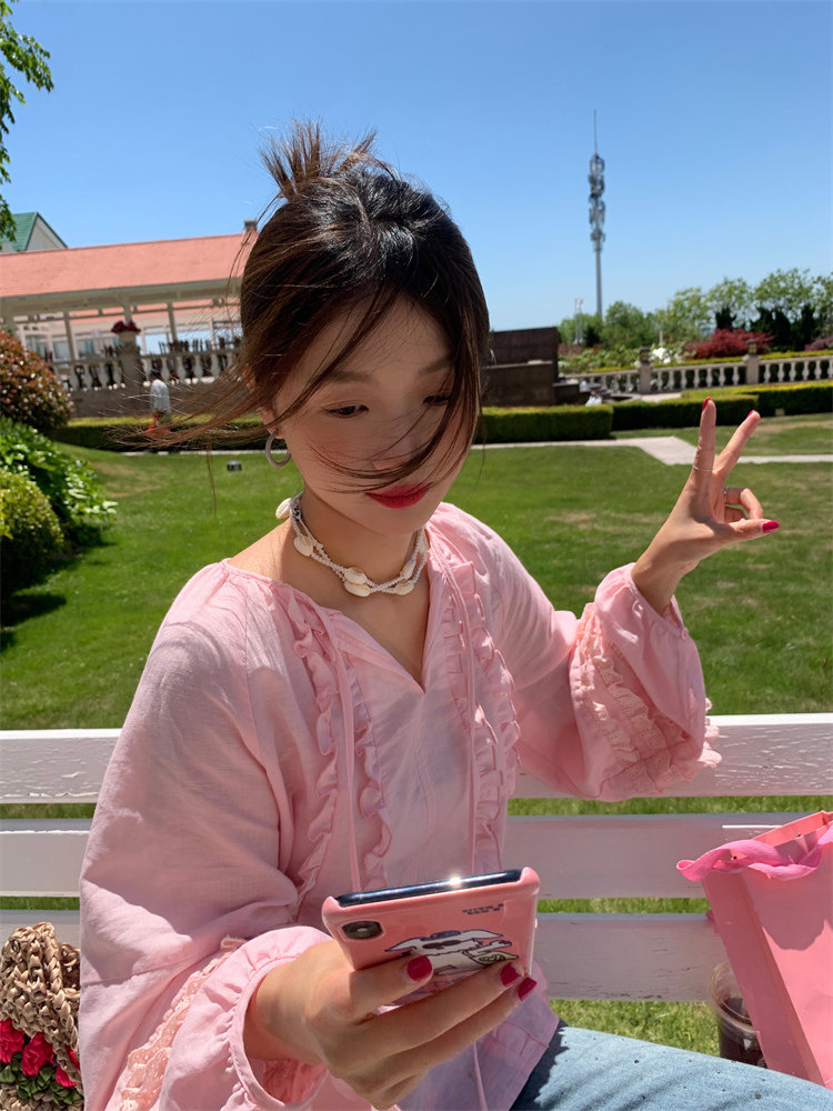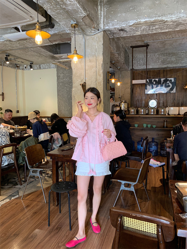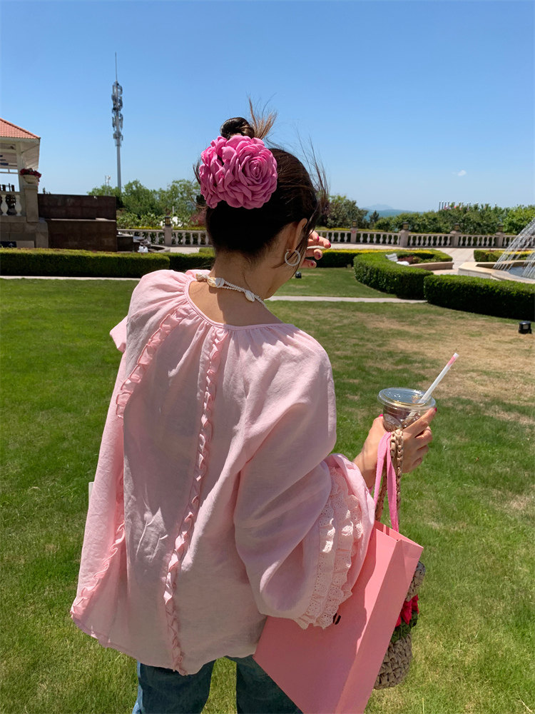 這款棉麻混紡的木耳邊襯衫也tai有氛圍感了吧!