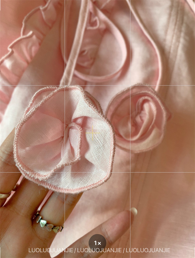領邊做了飄帶➕立體的玫瑰花,領口可根據個人喜好隨意調節造型!