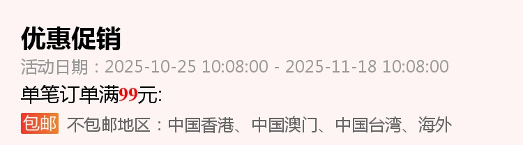 訂單達到免運條件後,運費將涵蓋關稅及5公斤以內包裹的基本運費。若包裹最終稱重超過5公斤,超重部分將依據集運倉運費計算公告(https://m.bcatlogistics.com/single?id=115)依照材積重量加收運費。客服人員將在收到加收運費通知後與您聯繫。若於收到收費通知D+5日內無法聯繫上您或未得到回覆,訂單將直接取消,包裹將進行逆物流退回廠商。此外,消費者需承擔大陸端的往返運費(約新台幣200至2000元不等)。若未支付逆物流費用,將無法進行退款作業。建議您在下單前先與商家客服確認運費預估金額。 - 「全球購折價券及運費折抵券,為消費者免費領取,視為附條件使用的優惠券,僅限訂單成功完成後生效。若因斷貨、缺貨等不可控因素導致訂單取消,折價券/運費折抵券因交易未成立而失效,恕不返還。消費者領取及使用本折價券,即視為同意相關活動規則及限制。」