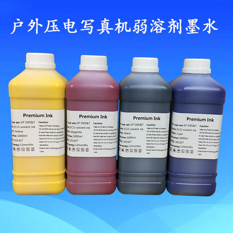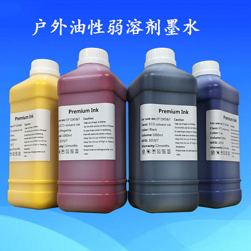弱溶劑墨水是一種綠色環保型溶劑戶外噴墨墨水,高安全性,低揮發性,高閃點,色域廣,耐候性佳,兼可防UV紫外線,為了因應廣大客戶及市場需求,同時開發弱溶劑型顏料和染料墨水,此兩款墨水除了保持了水性墨水制作畫面精度高優點的同時,又克服了水性墨水對底材的嚴苛和制作的畫面無法應用在戶外等缺點,并可應用于諸多無涂層的底材上。我們采用德國,日本,美國,臺灣等進口原料以確保整體質量的穩定性,精細的配方加上超高精度過濾,更是實現了 高精度的輸出以及的流暢性。