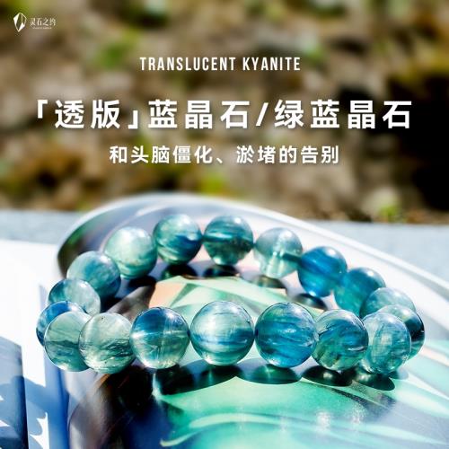 靈石之約天然水晶透體藍晶石手鏈藍色水晶貓眼綠藍晶石手串女飾品