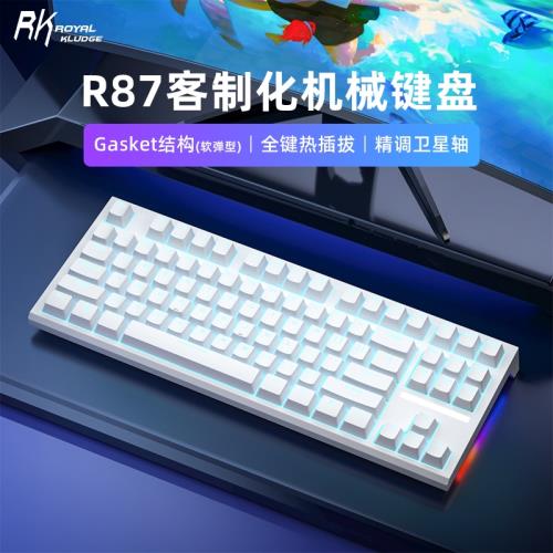 RKR87機械鍵盤有線電腦辦公茶青軸電競游戲銀軸線性軸熱插拔白色