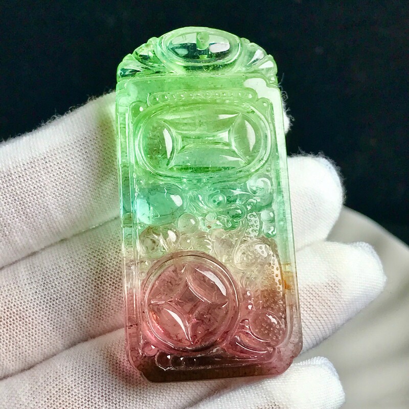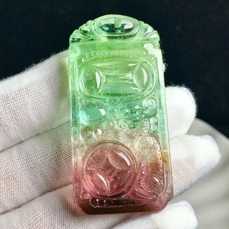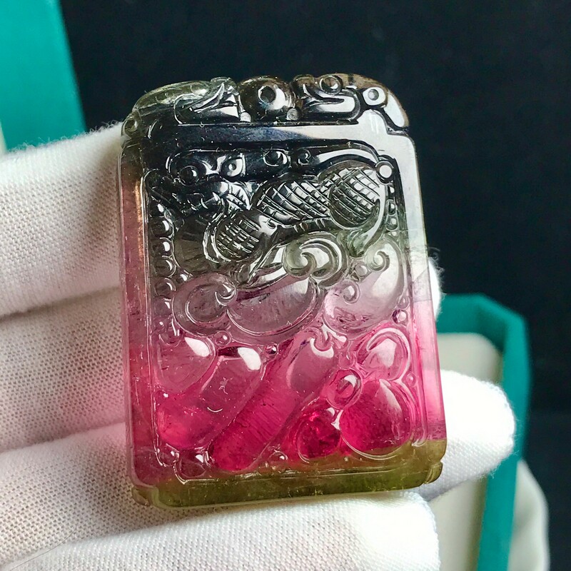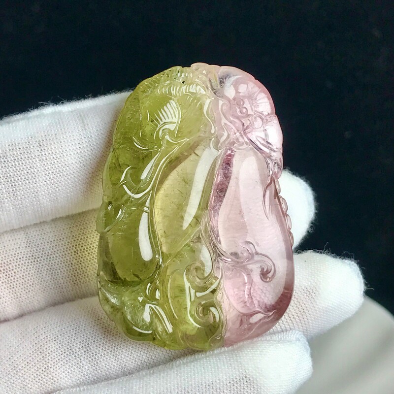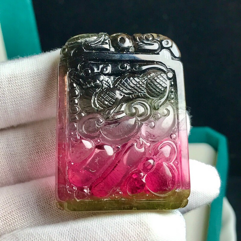 描述:玻璃體,飽滿立體雕工栩栩如生的天然西瓜碧璽麒麟吊墜,紫紅綠三色,靚麗迷人色彩,惹人喜歡!富有靈性!雕工精致立體,巧雕麒麟,如意 葫蘆 雙面精工雕刻,晶體通透,佩戴效果更增添魅力!招財,牌子方正潤澤