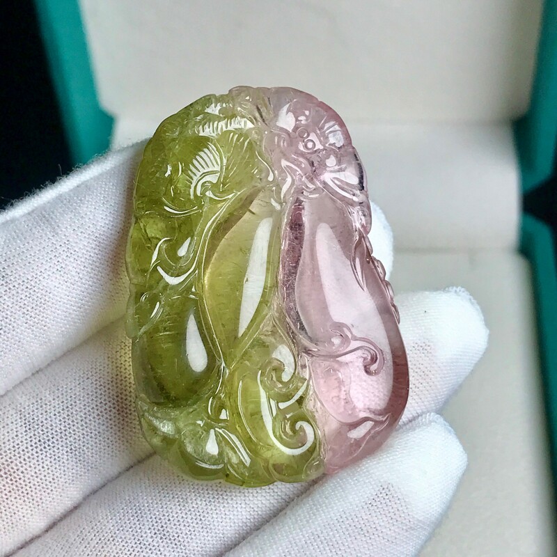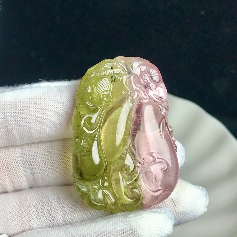 描述:玻璃體,仙女色,稀有珍貴紅綠瓜瓜,天然西瓜碧璽佛瓜吊墜,瓜瓜來福!顏色濃郁,靚麗色,晶體通透,雕工細膩!高品種