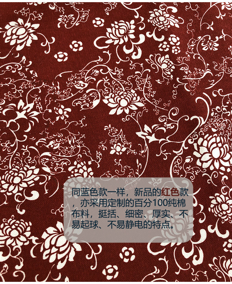 | 面 料 | 100%棉(經過2次縮水處理,使布面紋理緊致不變形,使用長久,無毛刺感) |
