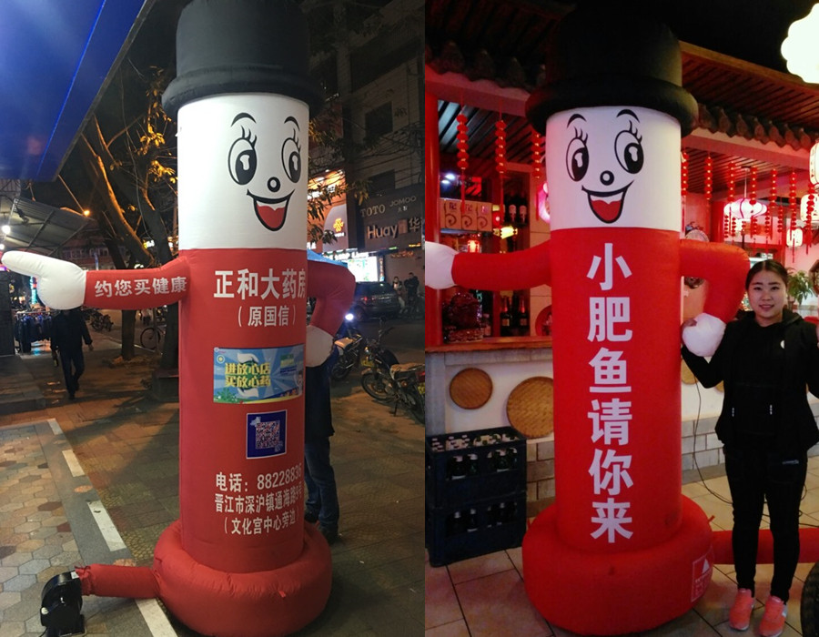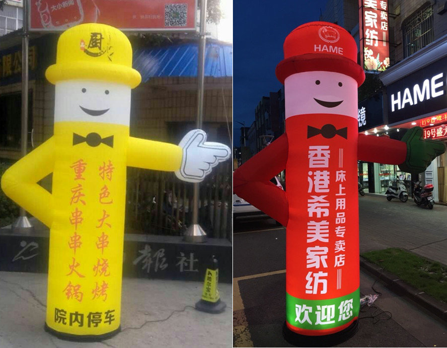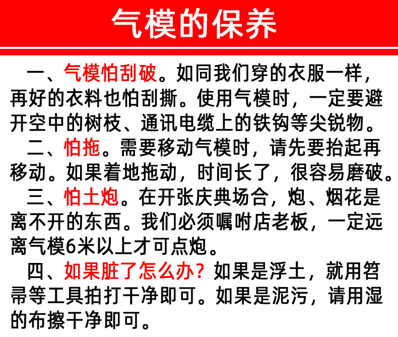 1.氣模人采用噴繪牛津布制作,畫面清晰色彩均勻。可定制任何畫面文字顏色。本款氣模人必須使用風機連續充氣使用,購買的親們無風機的話必須購買配套風機。