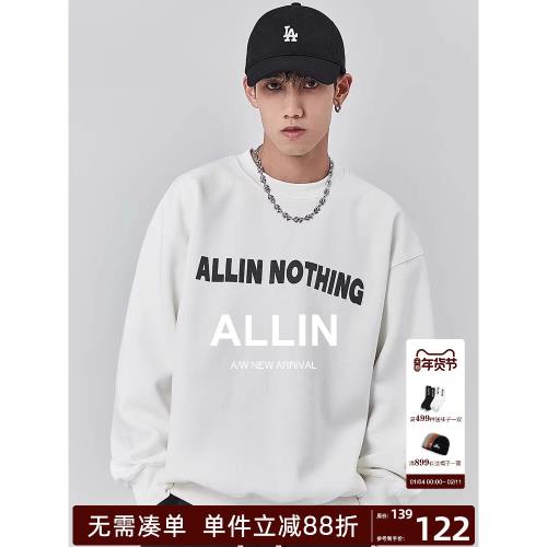 ALLIN 白色字母衛衣男秋冬潮流圓領無帽寬松打底衫潮牌情侶裝上衣