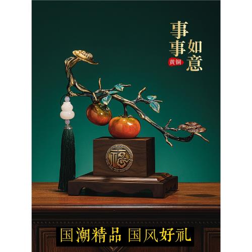 柿柿如意擺件事事如意柿子工藝品領導高檔辦公室裝飾開業喬遷禮物