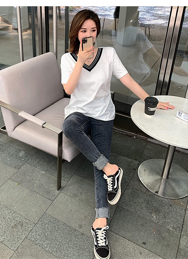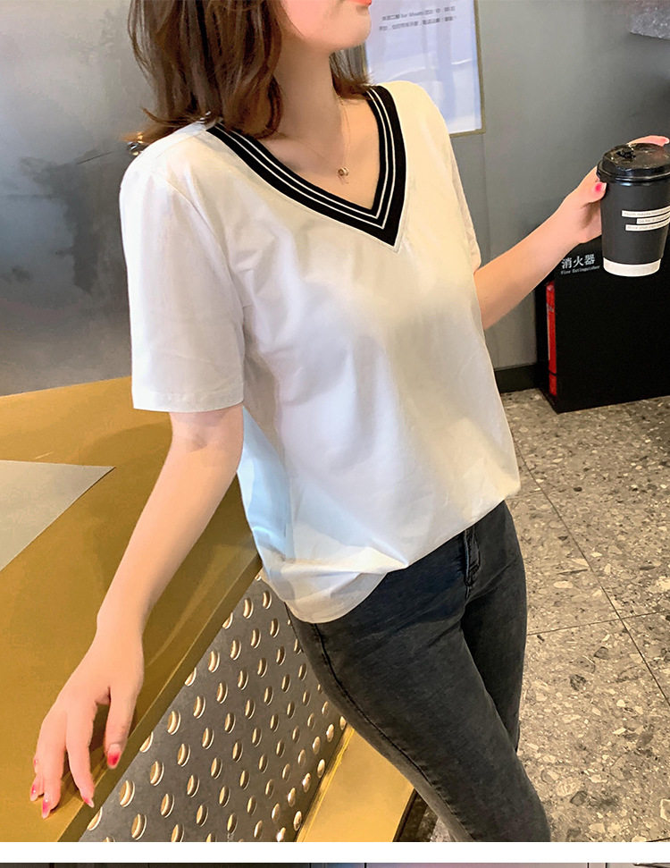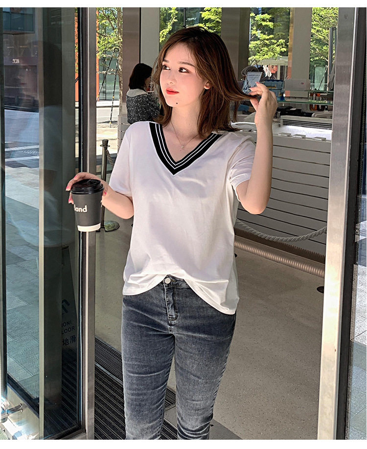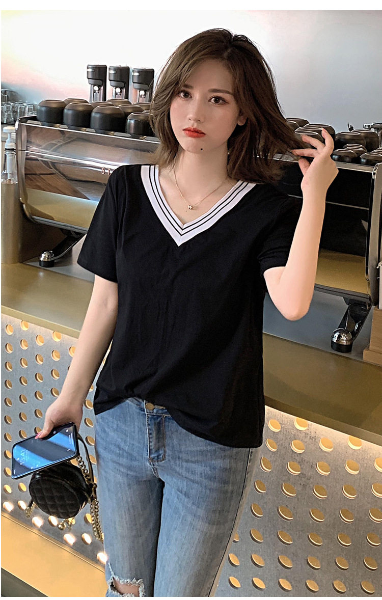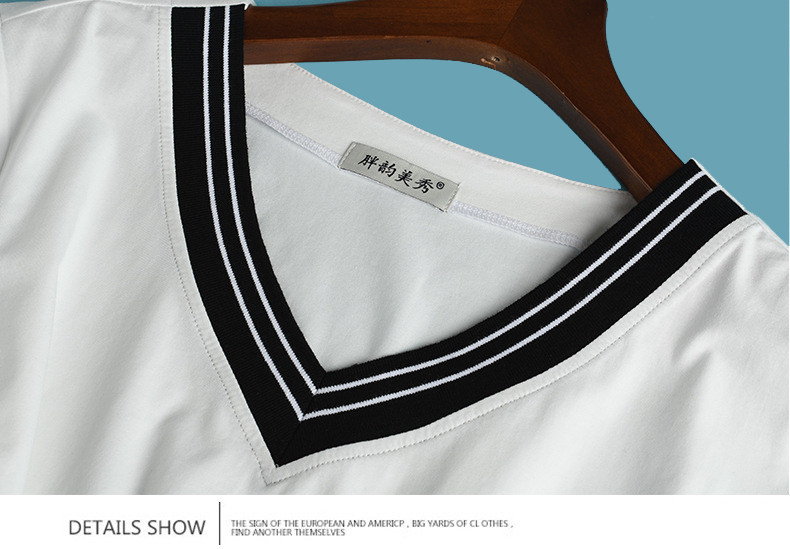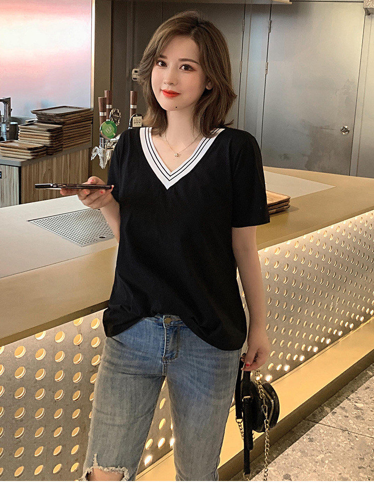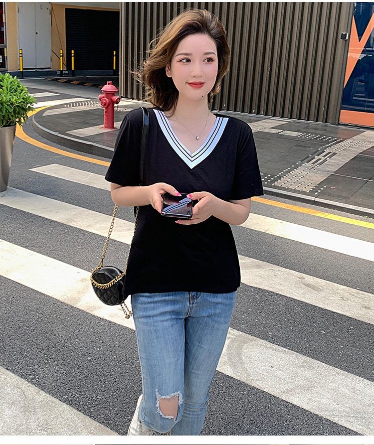 300斤特大碼女裝短袖V領T恤夏季260胖mm230顯瘦純棉洋氣遮肚半袖