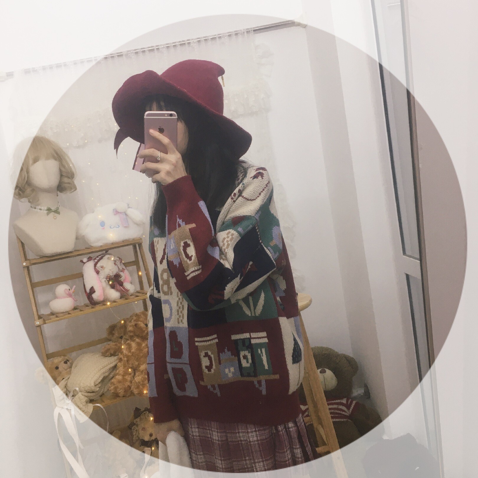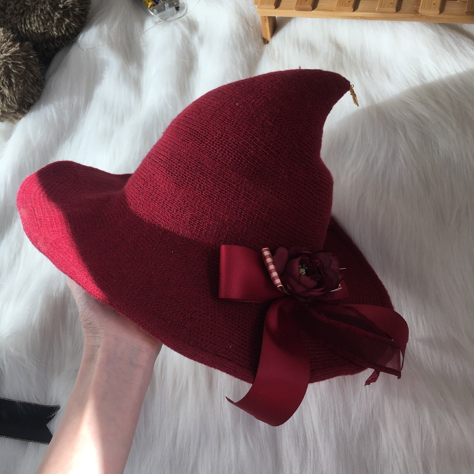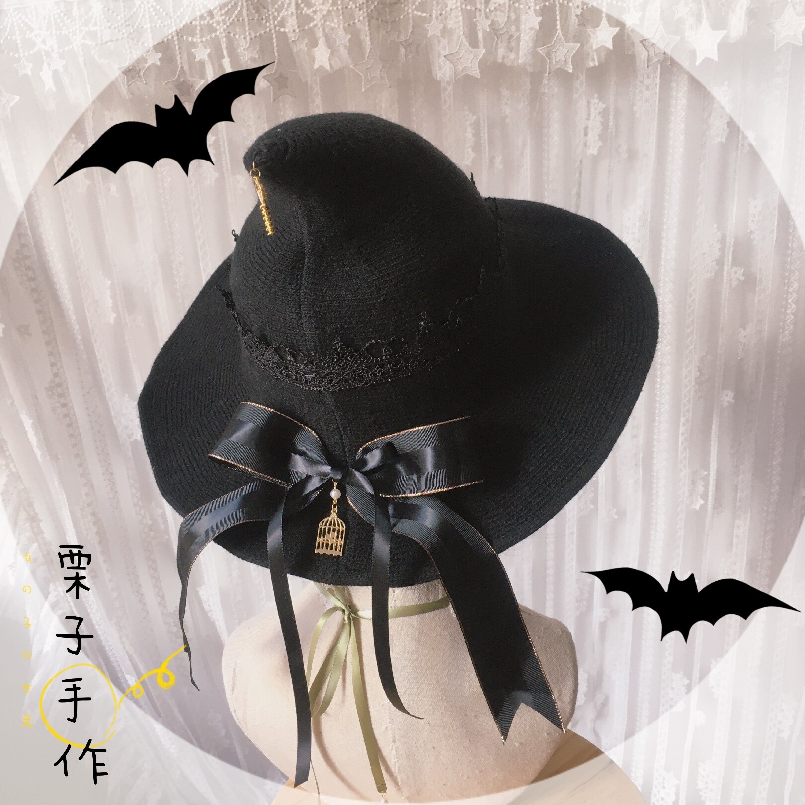 魔女帽是那種有點硬的材質編織的,所以戴著感覺很有型比較立體哦,帽檐里面有鐵絲 可以調整帽子造型
