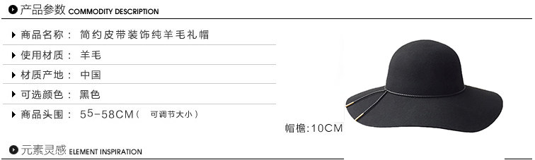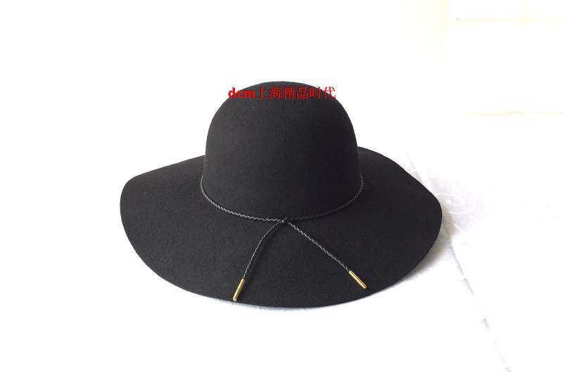 新款經典黑色復古圓頂毛呢帽,編織蝴蝶結裝飾帽,大沿波浪邊將優雅與甜美巧妙地結合在一起,頗有復古文藝風的感覺。