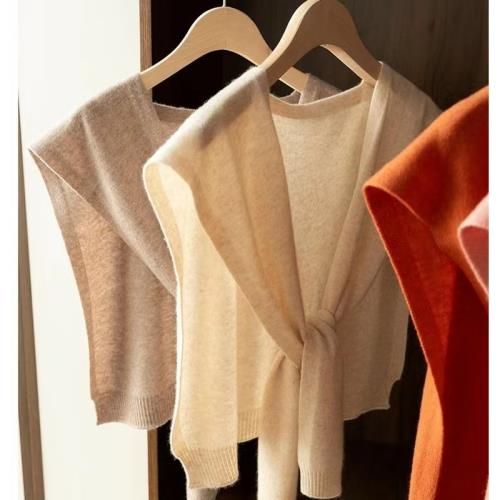 100%羊毛純色小披肩女外搭打結針織多用圍巾時尚百搭春秋薄款搭肩