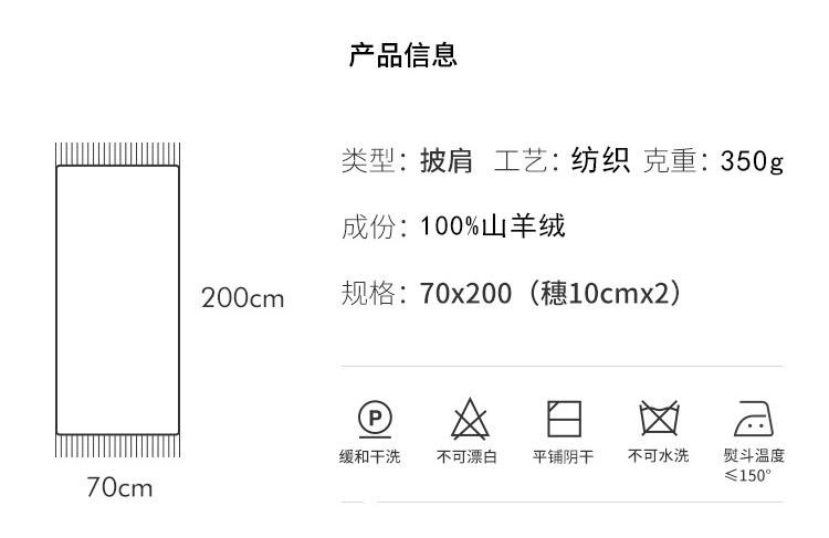 洗滌方式:建議干洗。不可水洗!水洗會影響圍巾的保暖性和絨毛的舒展狀態,會損壞圍巾的功能性和品貌。