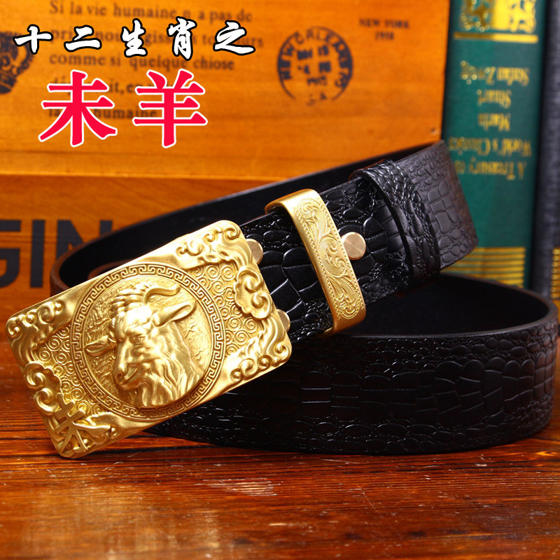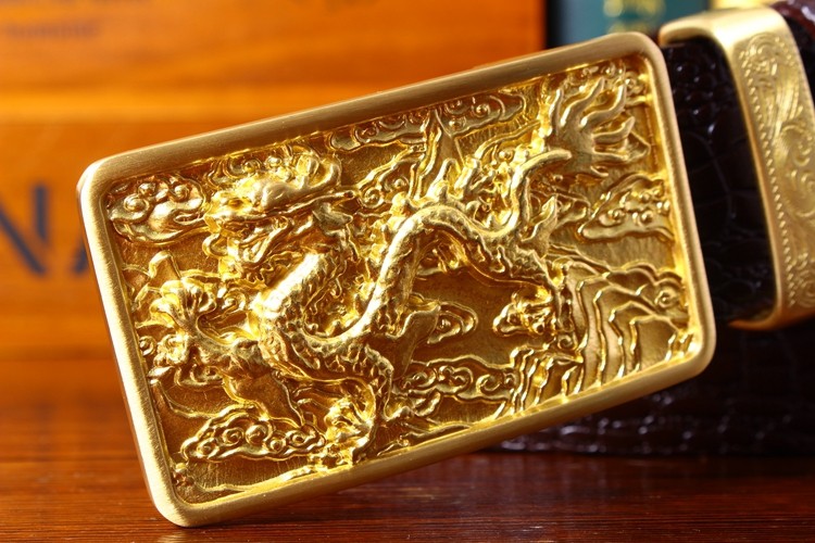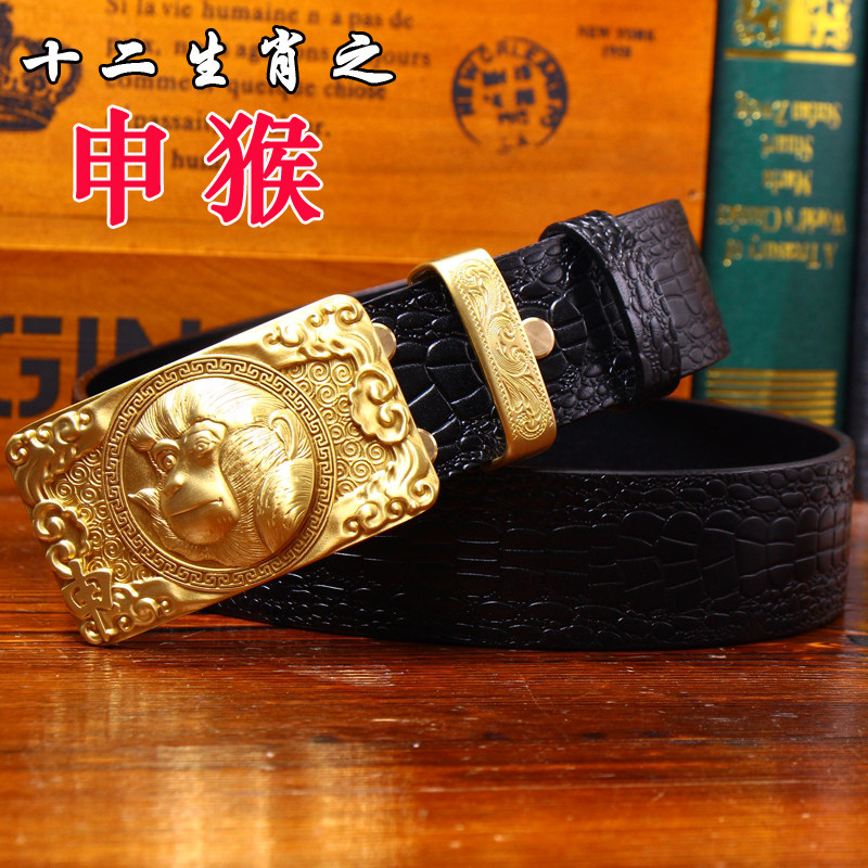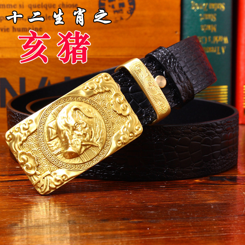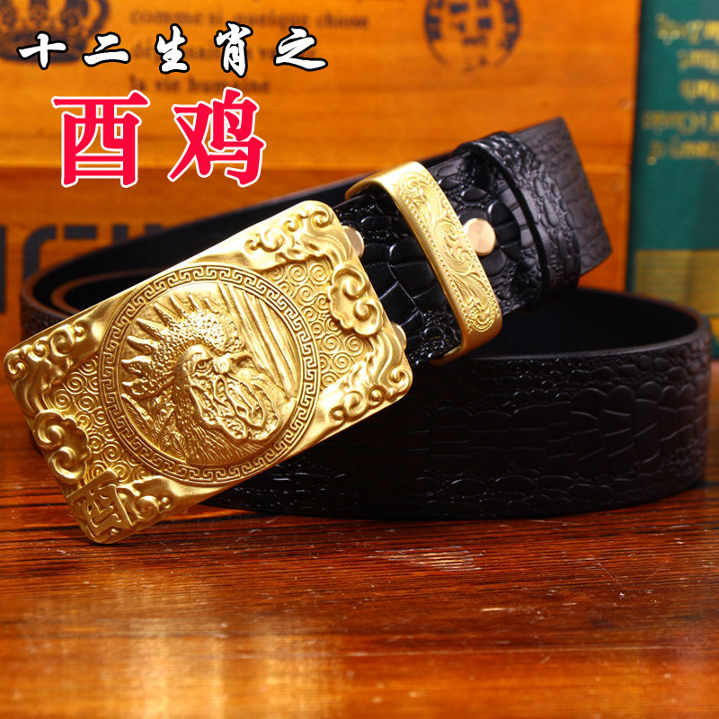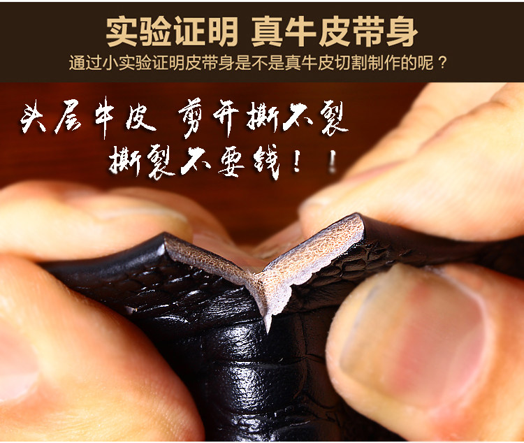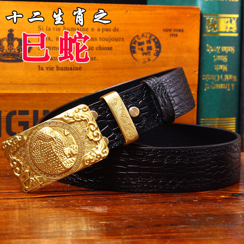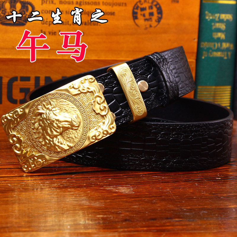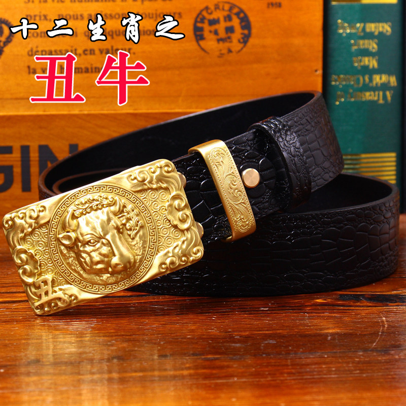 皇耀之玉銅扣手工皮帶男頭層牛皮腰帶男中國風皮帶鱷魚紋平滑扣