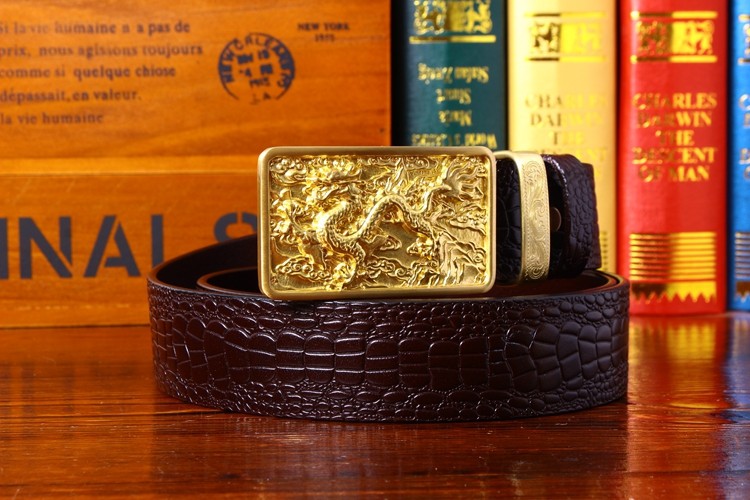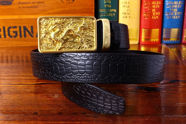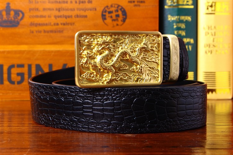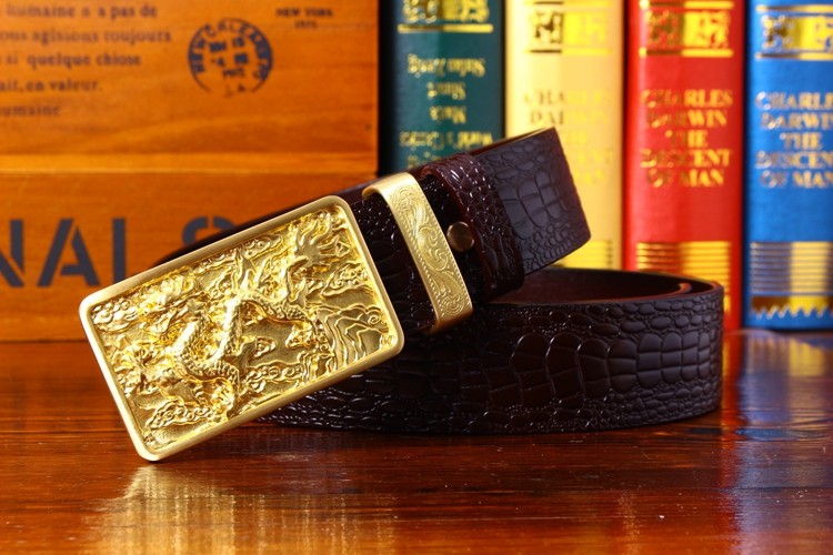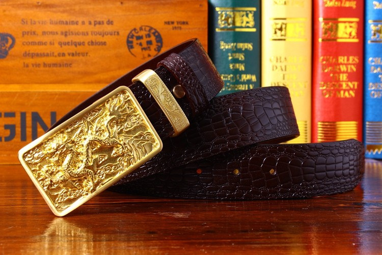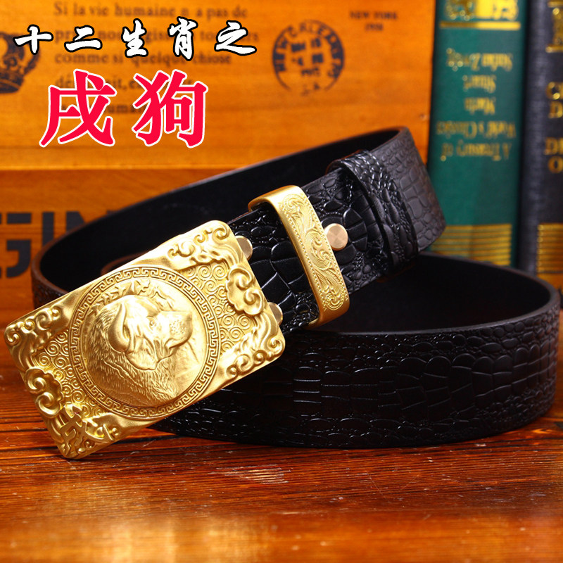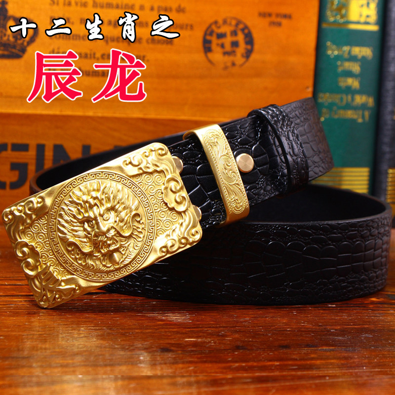 中國風鱷魚紋純銅龍頭皮帶復古皮帶男士真皮腰帶個性銅扣青年褲帶
