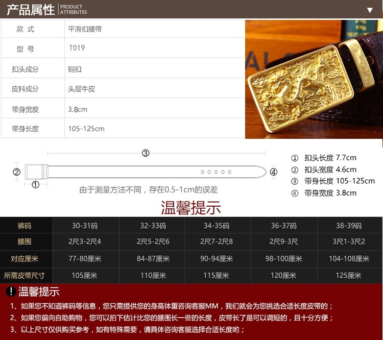 浮雕銅扣皮帶頭層牛皮男真皮復古皮帶純銅龍平滑扣百搭青年潮腰帶