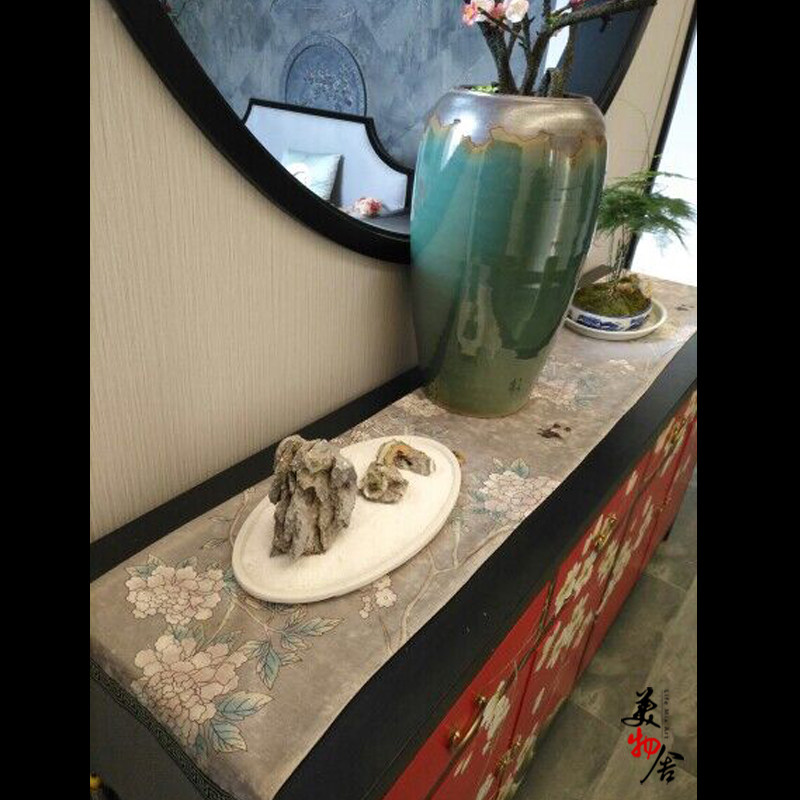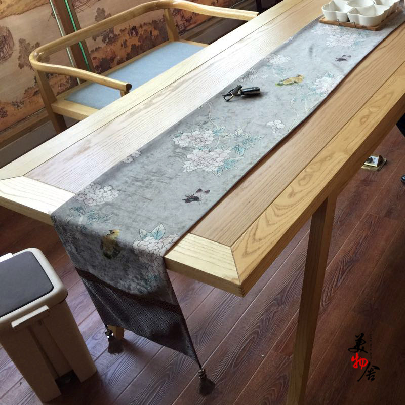 新古典桌旗茶席 桌旗中式禪意 中國風 高檔花鳥床旗奢華布藝桌布