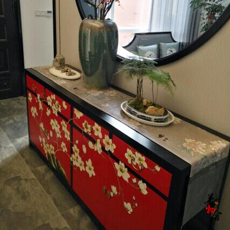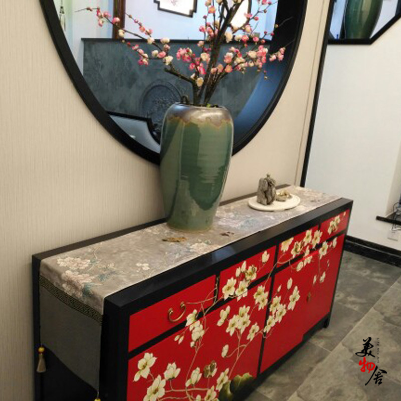 風格不但適合新中式,也適合歐式風格。搭配桌子,我們新品配了一下,不管木色,黑色,還是白色都很適合,是款很百搭的桌旗
