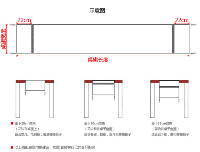 不縮水,不退色,不變形,易打理,流光溢彩,盡顯奢華,富貴。特色有質感的桌旗,可讓你的家中布置更顯高雅,對您的家居生活起到畫龍點睛的提升品位和格調的裝飾作用,同時也有效地保護您平整光滑的桌面。