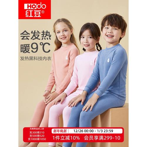 紅豆兒童德絨保暖內衣套發熱無痕睡衣男女童寶寶加絨條紋秋衣秋褲